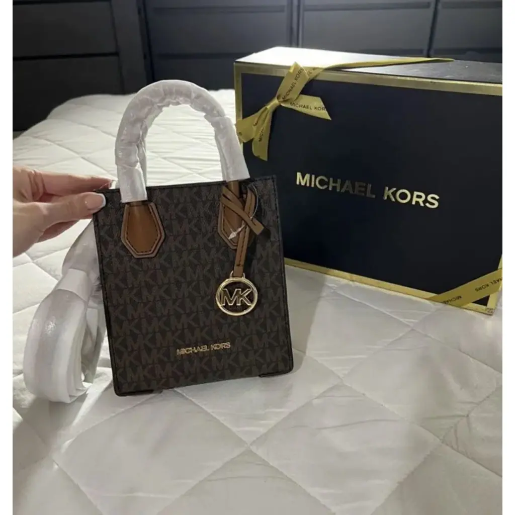 Сумка оригинал. Новая Модель: Michael Kors Mercer XS Материал: канва Цвет: коричневый Фурнитура: золото Размер: 15,2 см x 17,1 см x 6,4 см Продается без платочка, это реквизит модели
