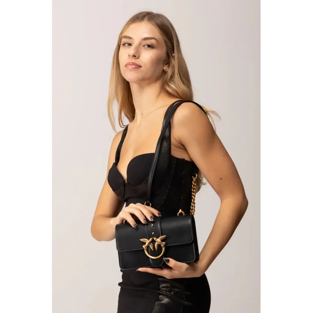 PINKO Черная кожаная сумка через плечо