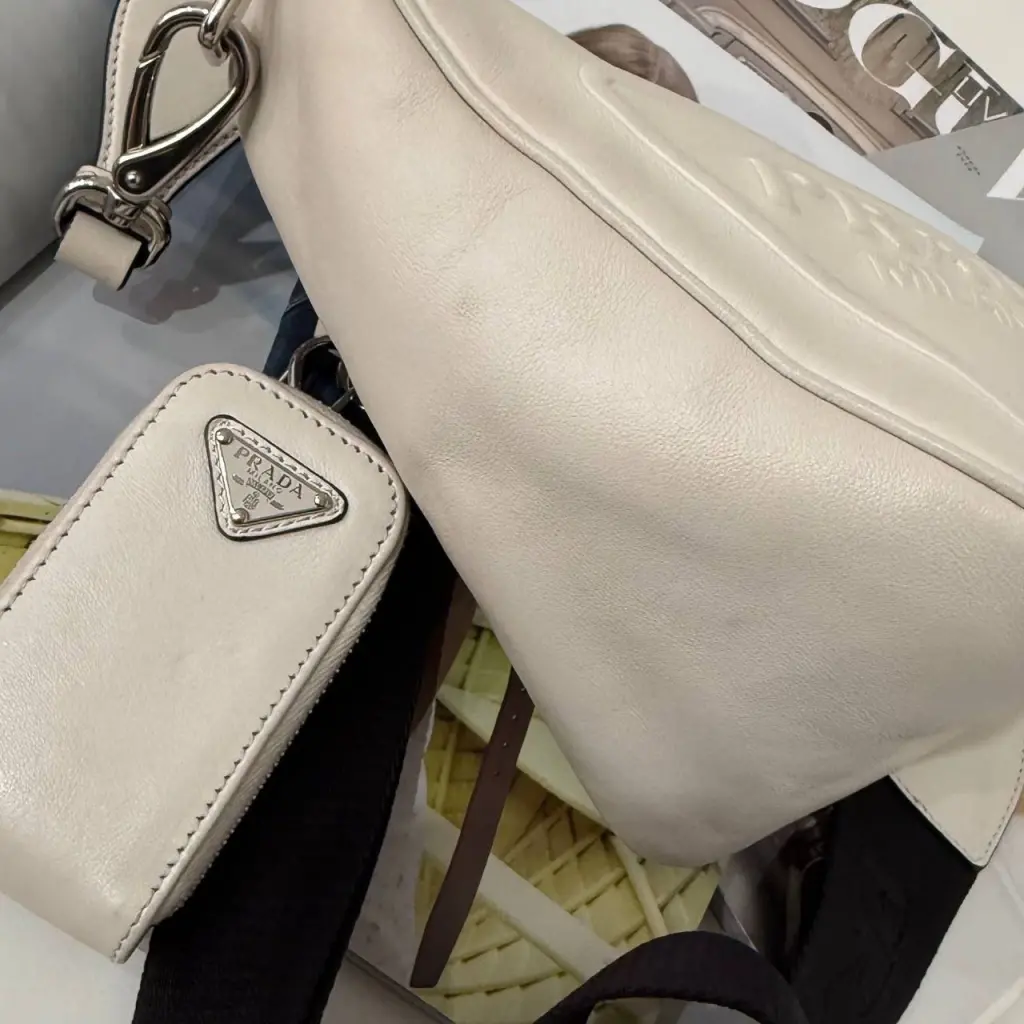 Сумка через плечо Grace от Prada Состояние хорошее, есть некритичные следы носки Натуральная кожа в цвете топленое молоко Достаточно удобная на каждый день В комплекте со сьемным кармашком и плечевым ремнем Цена бутика 240.000₽