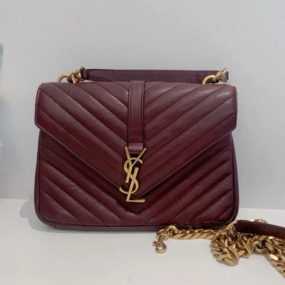 SAINT LAURENT Бордовая кожаная сумка через плечо