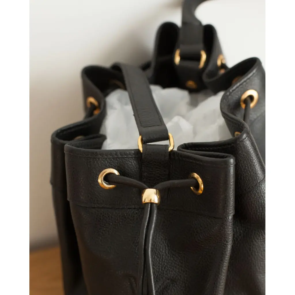 Сумка Yves Saint Laurent Bucket с логотипом бренда. Производство Франция. Сумка выполнена из натуральной кожи, фурнитура покрыта золотом. Комплект: нет. Вместительная и практичная, идеально подойдёт для повседневной носки. Ремень регулируется. Длина (по дну): 26 см, высота: 27 см.