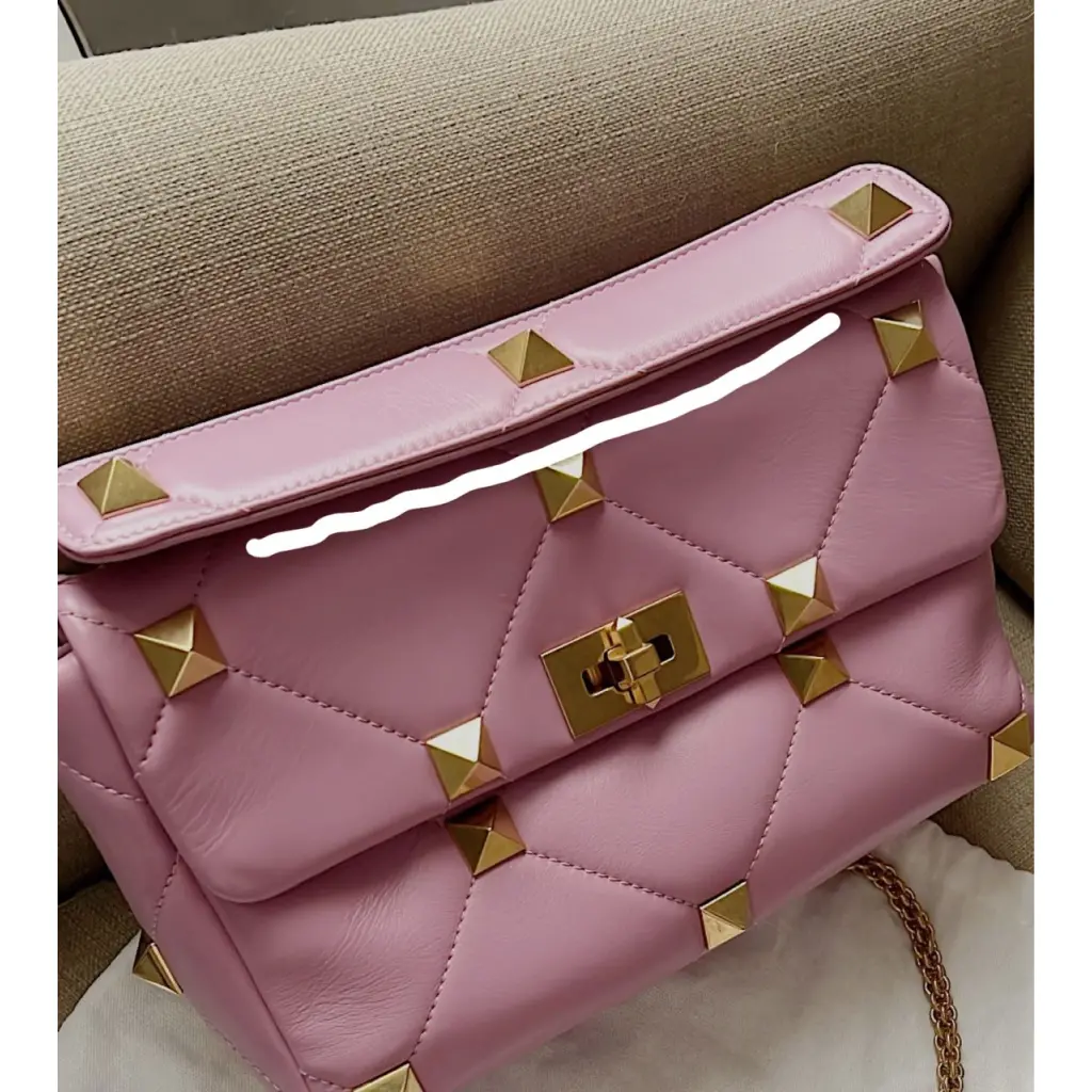 Продам стеганую сумку из кожи от Valentino Garavani. Модель с верхней ручкой, цепочкой на плечо, откидным клапаном, поворотным замком, золотистой фурнитурой и отделкой крупными заклёпками.