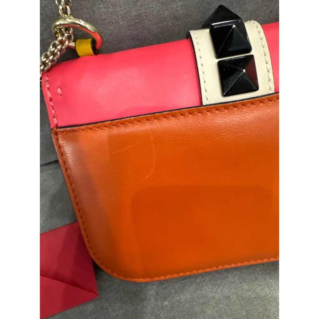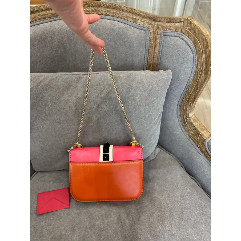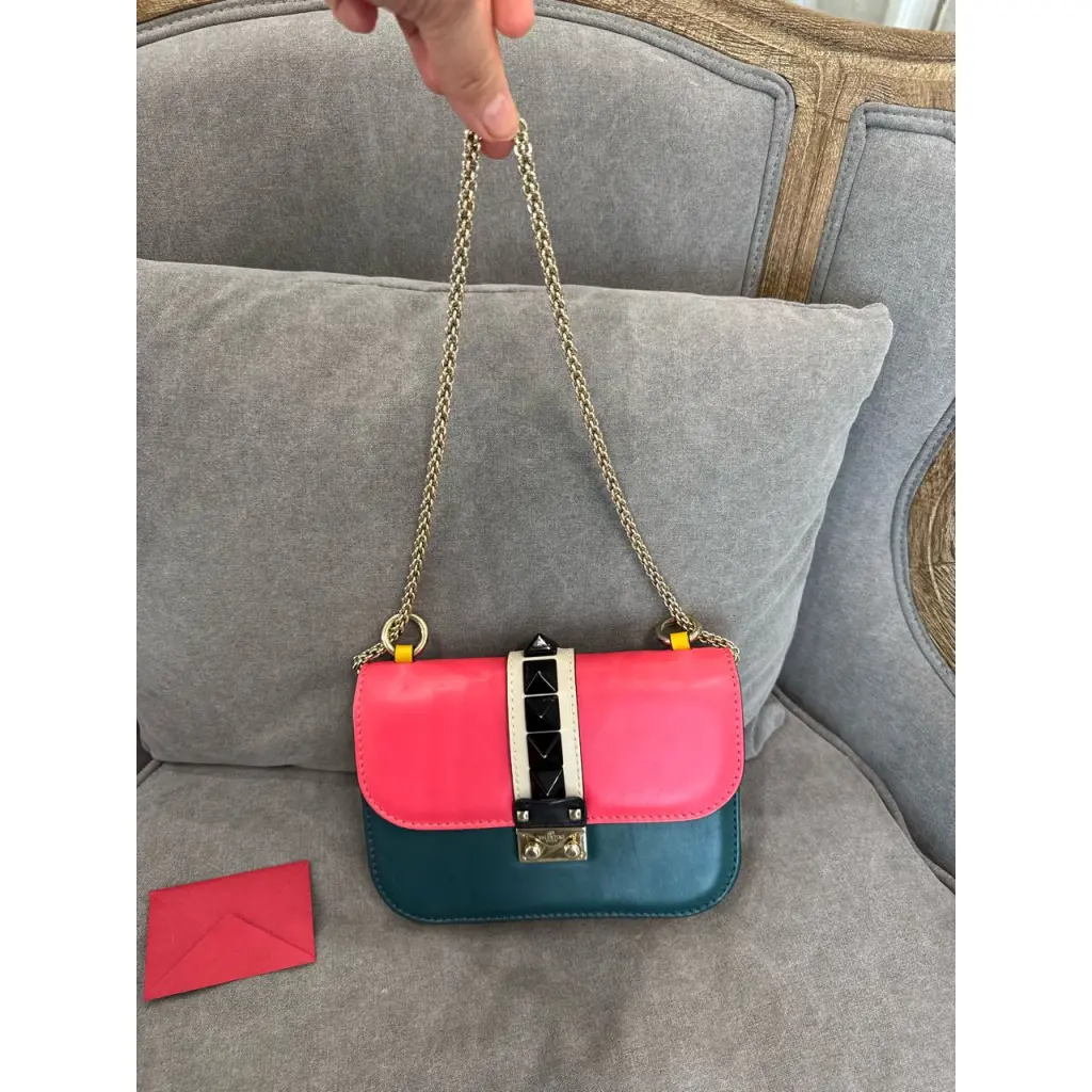 Кожаная сумка Valentino. Разноцветна: темно-зеленый, розовый, желтый, оранжевый. В отличном состоянии . Размер 20*15