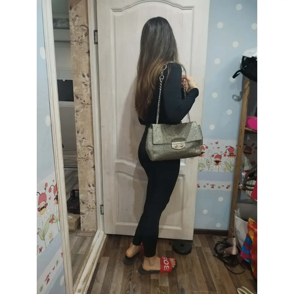шикарная сумка Yves Saint Laurent из кожи страуса. сумка в очень хорошем состоянии. вещь, можно сказать, на века. серого цвета с зеленым отливом. имеется дефект на подкладе, можно отдать в чистку.