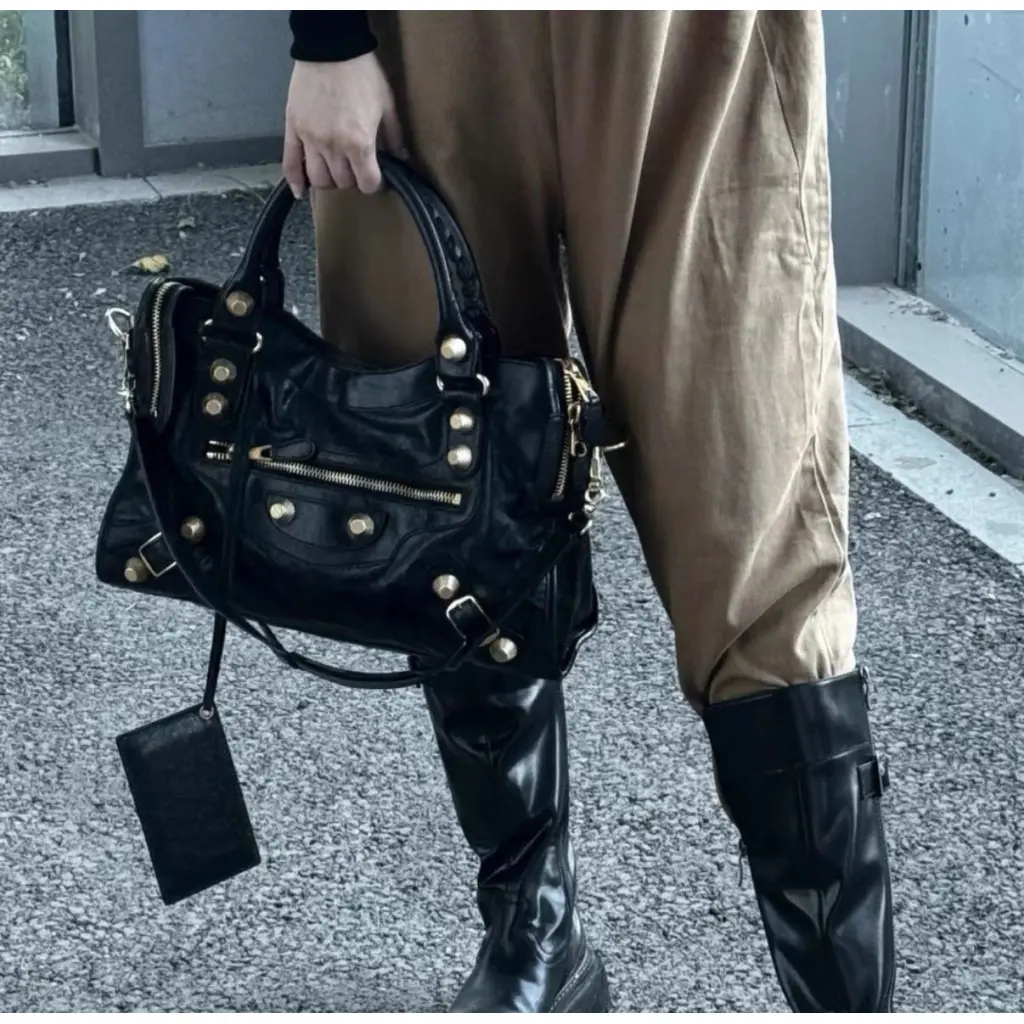 BALENCIAGA Черная кожаная сумка с короткими ручками