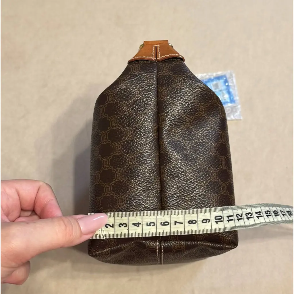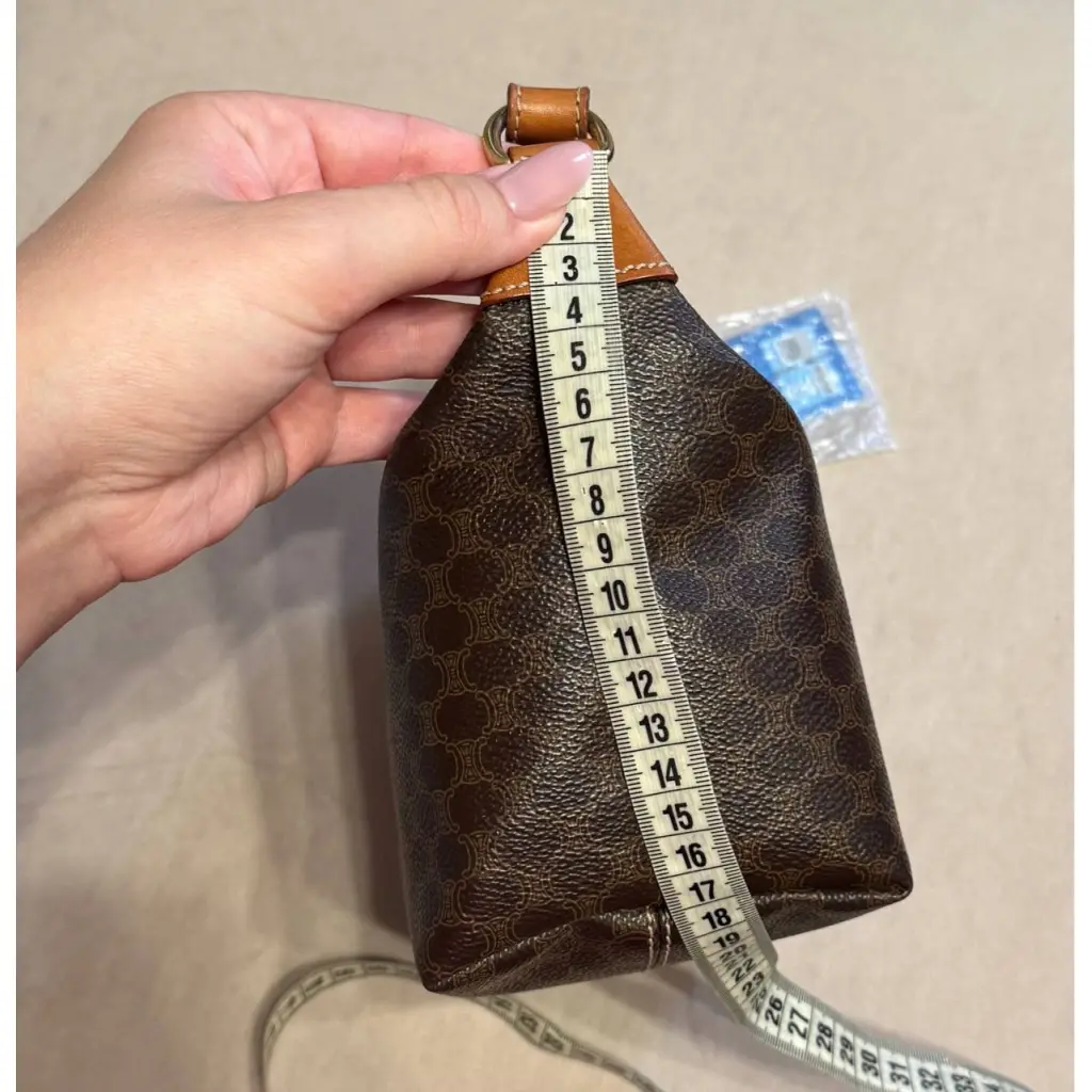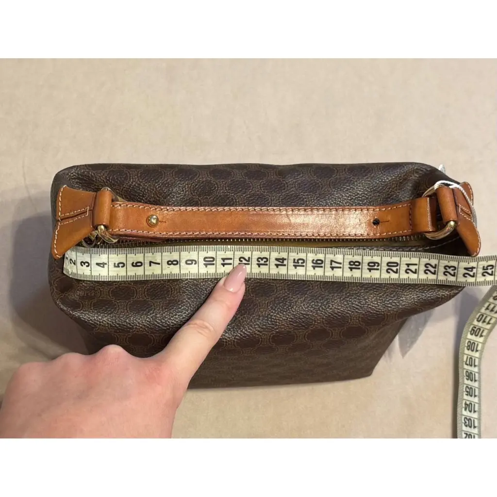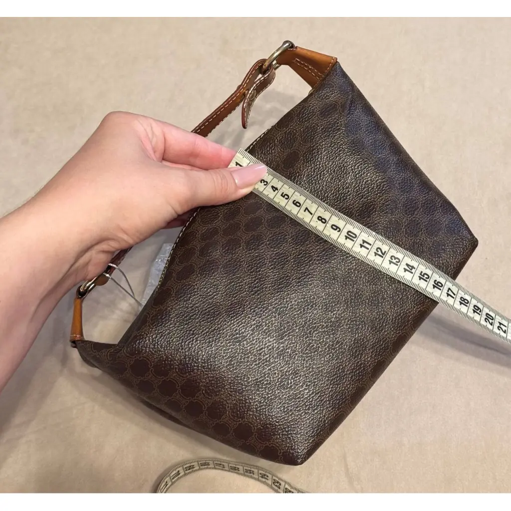 Мини-сумочка Celine Macadam с монограммой, ремешок из кожи вачетта (vachetta) с золотой фурнитурой. Состояние отличное, микро протертость на 1 углу, внутри сумки есть небольшие пятна.