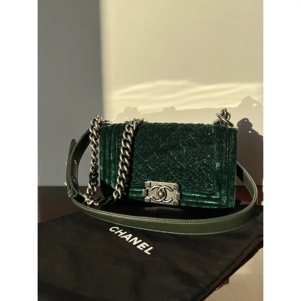 Chanel Dark Green Lambskin Leather Velvet Small Boy Bag