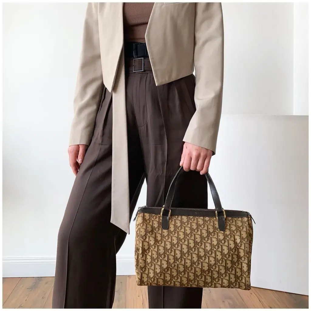 Коллекционная винтажная вещь. Не пахнет ни старостью, ни винтажем, ни плесенью. Сам канвас с узором Trotter в благородной коричнево-бежевой гамме и прекрасном состоянии: без пятен, потёртостей (даже состояние дна идеальное).