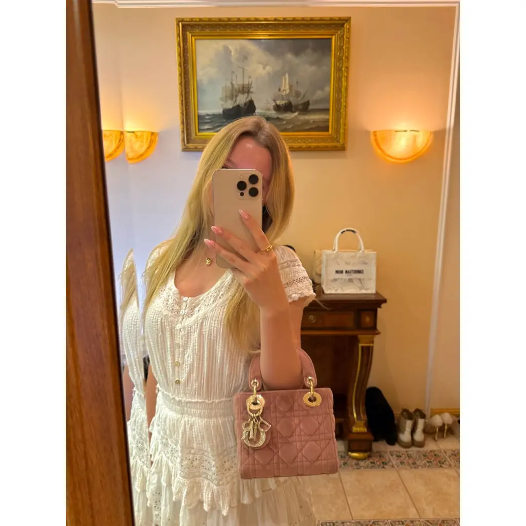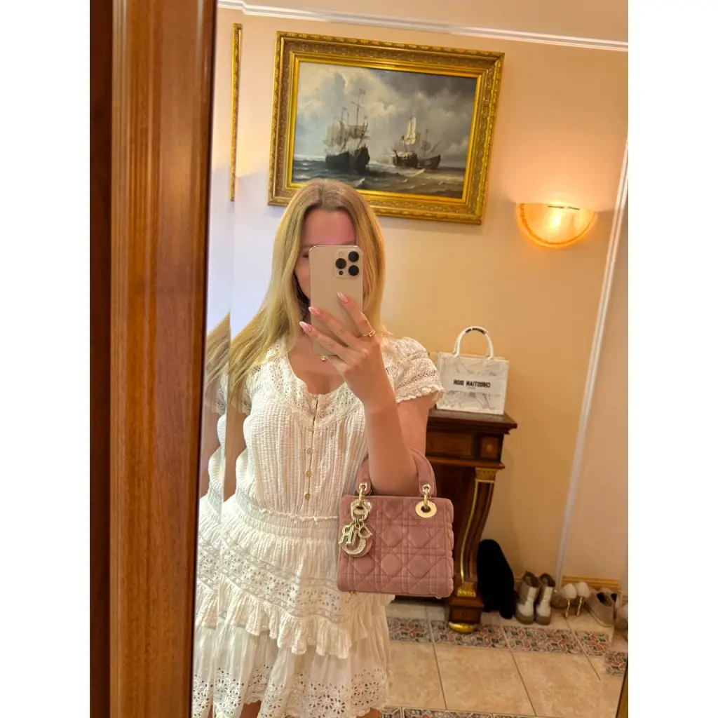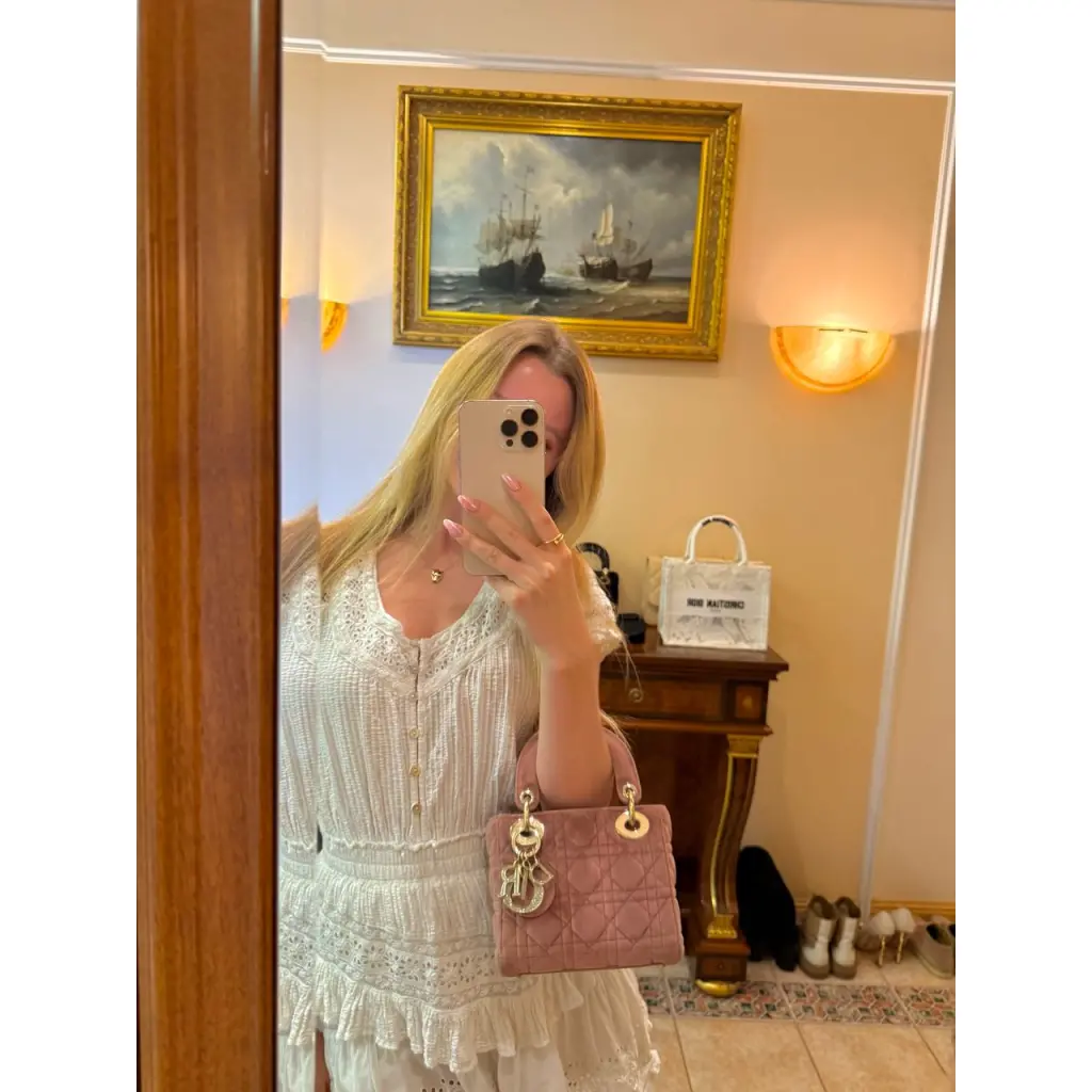 Невероятная новая бархатная Lady Dior mini💖 Лимитированная коллекция с брелком с кристаллами Swarovski💎 Любимый всеми ремешок-цепочка и культовый mini размер. В комплекте коробка и пыльник. Очень красивый пыльно-розовый цвет, переливается на солнце.