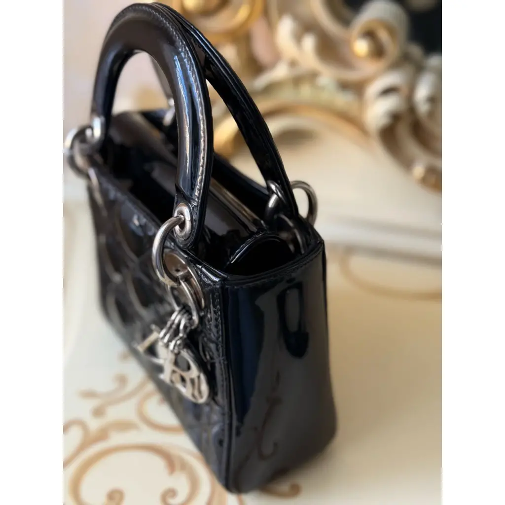 CHRISTIAN DIOR Черная сумка с короткими ручками из лакированной кожи