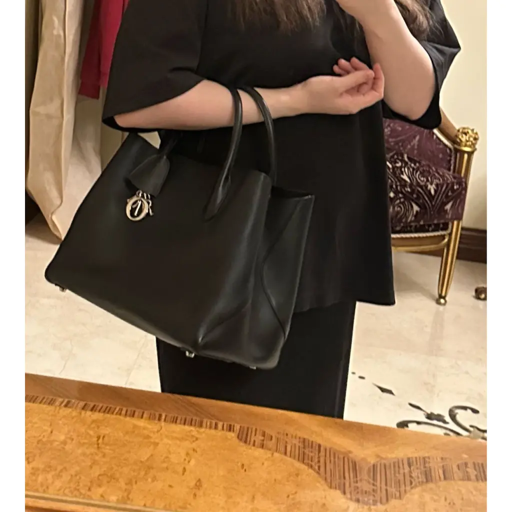 CHRISTIAN DIOR Черная кожаная сумка с короткими ручками