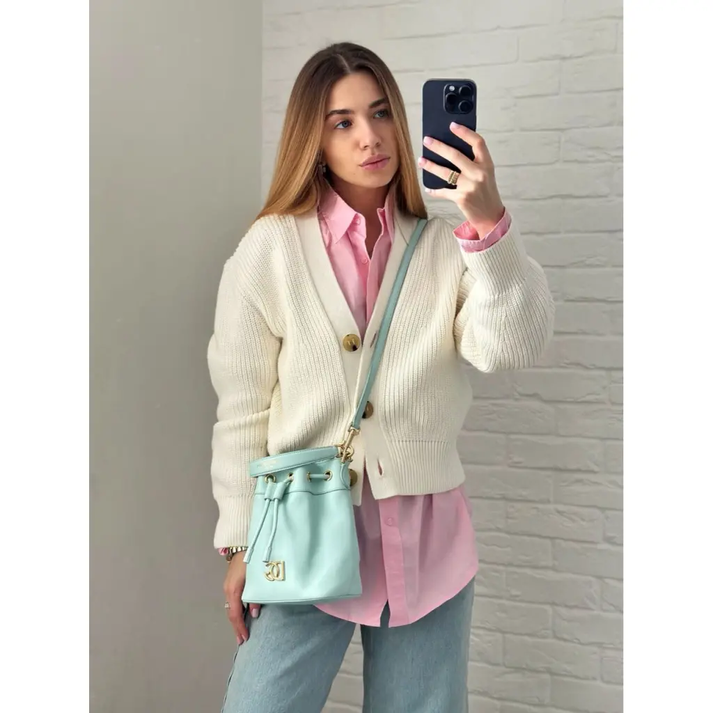 Продам сумочку Dolce & Gabbana DG Bucket Bag Millennials Light Blue Leather. Потрясающе красивого цвета. Состояние близко к идеальному. Почти не носилась. Имеются мелкие царапинки на фурнитуре и два пятнышка. Выполнена из 100% натуральной кожи. В комплекте пыльник. Замеры: Высота 21 см, ширина 18,5 см, глубина 11 см.
