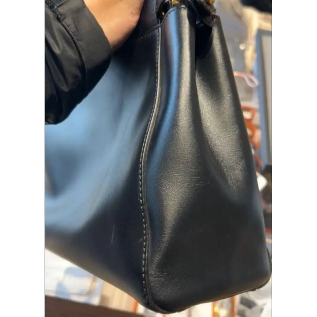 Черная кожаная сумка с короткими ручками