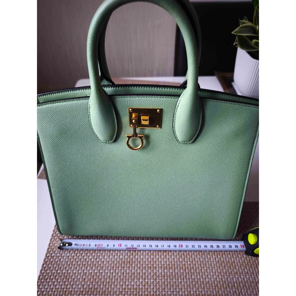 FERRAGAMO Салатовая кожаная сумка с короткими ручками
