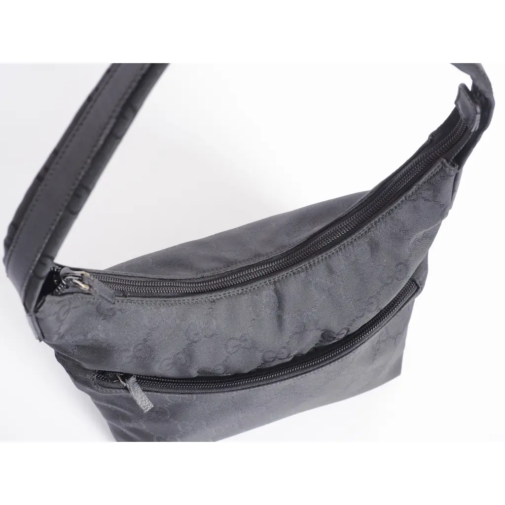 Винтажная сумка Gucci GG Nylon Bag. Оригинал, в отличном состоянии. Хорошо держит форму. Цвет черно-серый. Нейлон в отличном состоянии, есть незначительные следы чуть выше молнии кармана, в носке этого не будет видно. Ручка крепкая без трещин и заломов, на коже есть незначительные легкие царапины. Фурнитура в очень хорошем состоянии, собачка на наружном кармане не родная (выполнена из натуральной кожи). Подклад в отличном состоянии. Размер Ш25 х В19 х Г12,5 см. Высота с ручкой 40,5 см. Рост модели 180 см. Детальные фото будут в комментариях. Любые дополнительные фото по запросу.