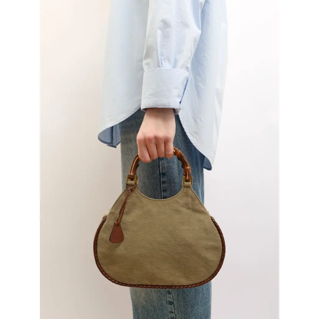 GUCCI Хаки тканевая сумка с короткими ручками