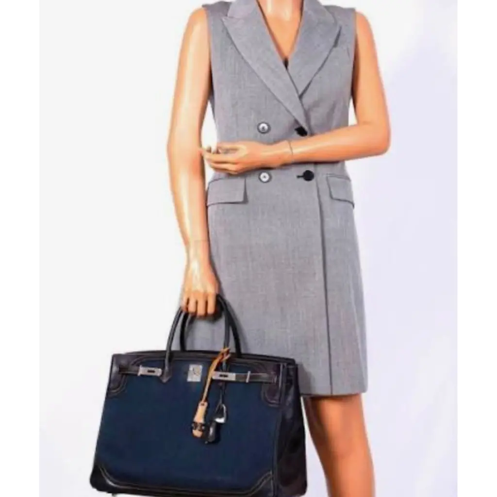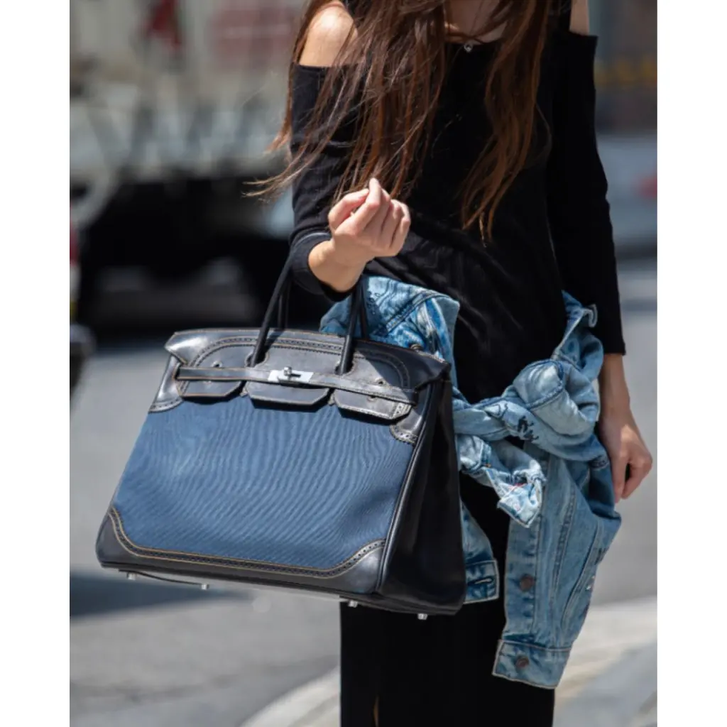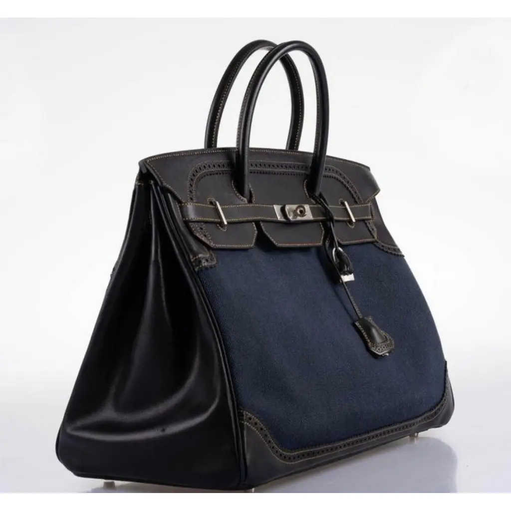 Сумка Limited Edition Birkin 40 Denim Bicolor Ghillies bag HERMES. Кожа комбинации кожи Barenia шоколадно-коричневого цвета, и ткани канва цвета индиго/деним. Фурнитура - матовый палладий серебряного цвета. Отличное состояние, почти новая, носила 4-5 раз. Полный комплект: lock, keys, clochette, sleepers, raincoat.