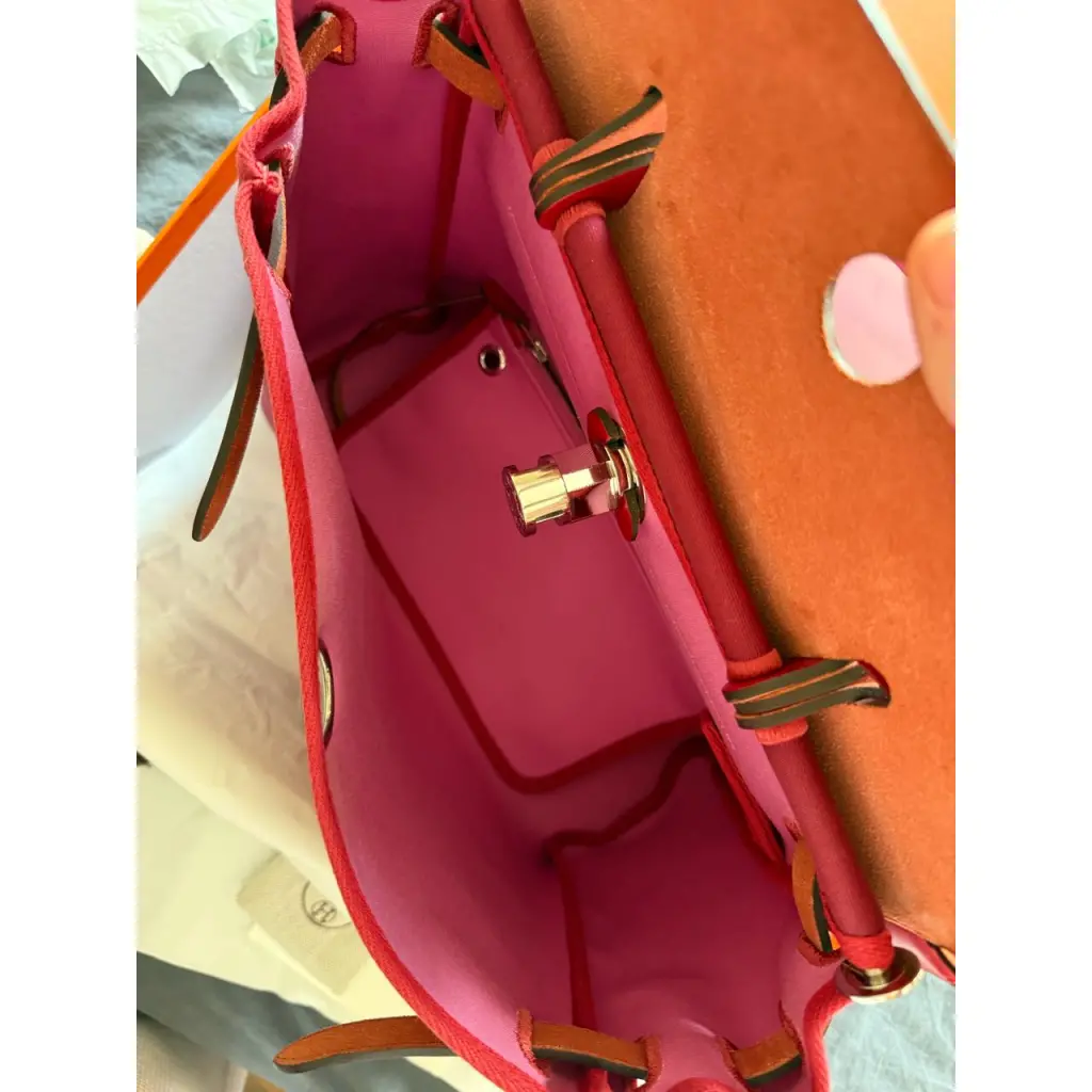 Трещин на коже нет, сумка двусторонняя (бордово-розовая)