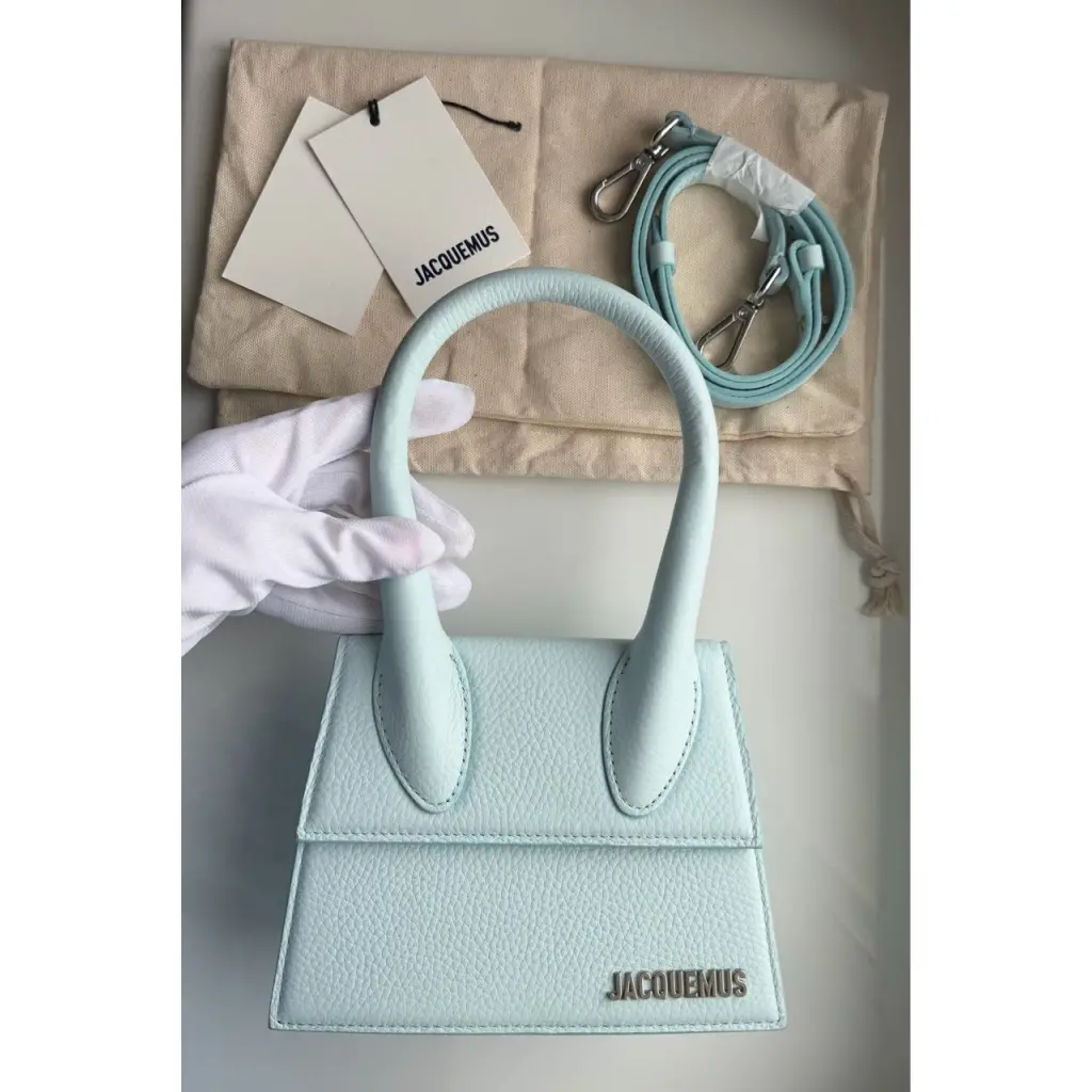 JACQUEMUS Голубая кожаная сумка с короткими ручками