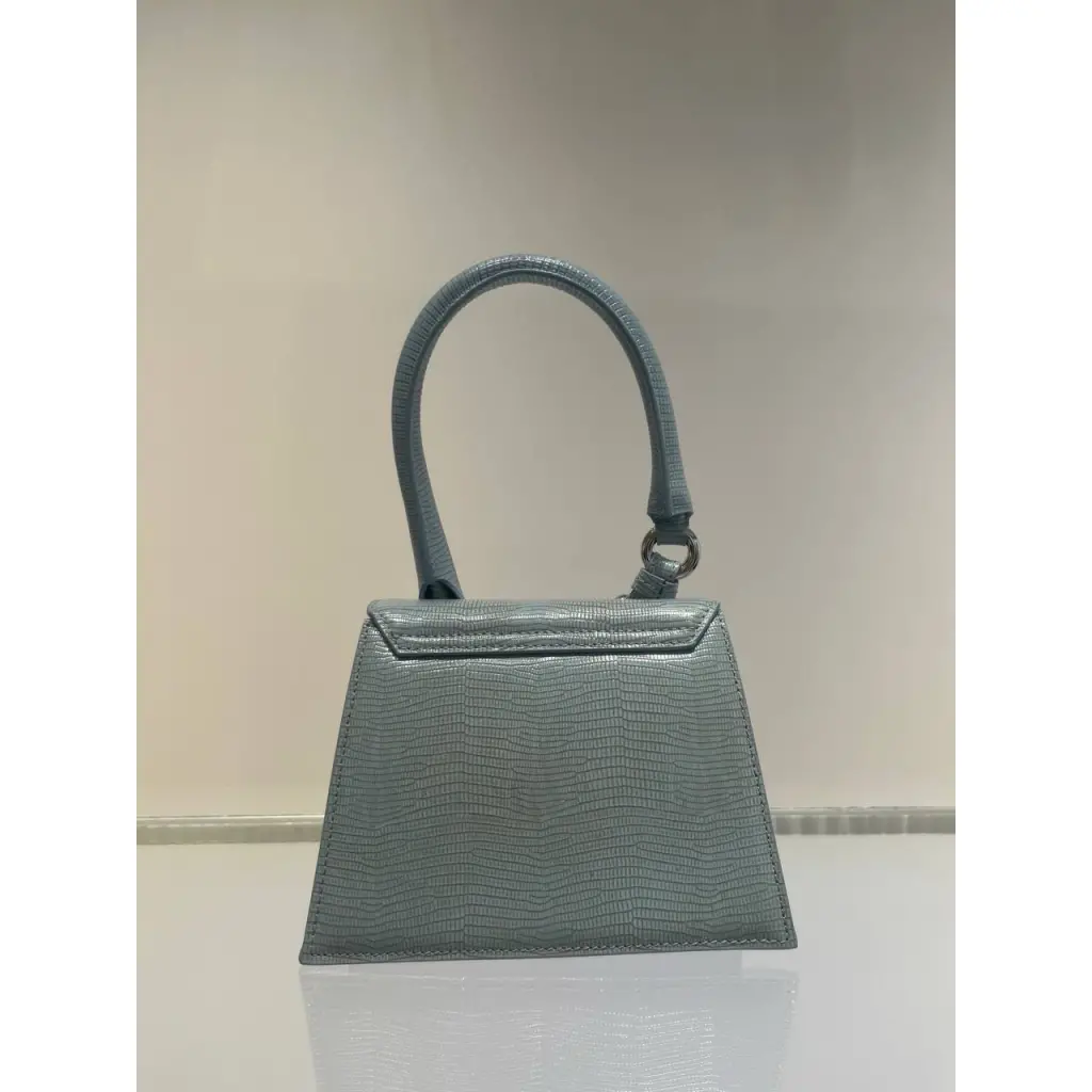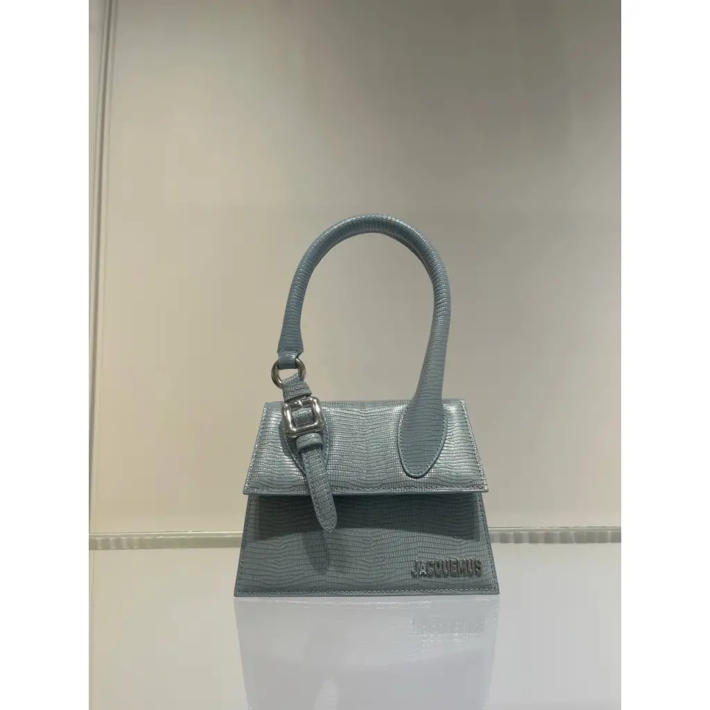 JACQUEMUS Chiquito из кожи телёнка голубого оттенка с узором-тиснением под кожу ящерицы Параметры: 18 х 13,5 см Состав: 100% натуральная кожа (телячья)