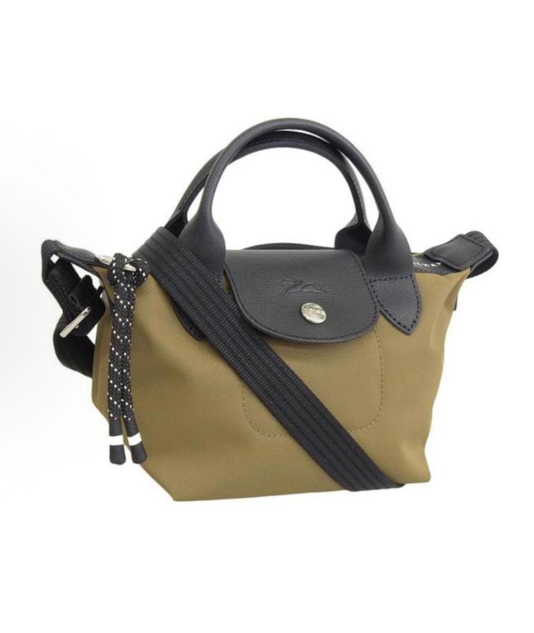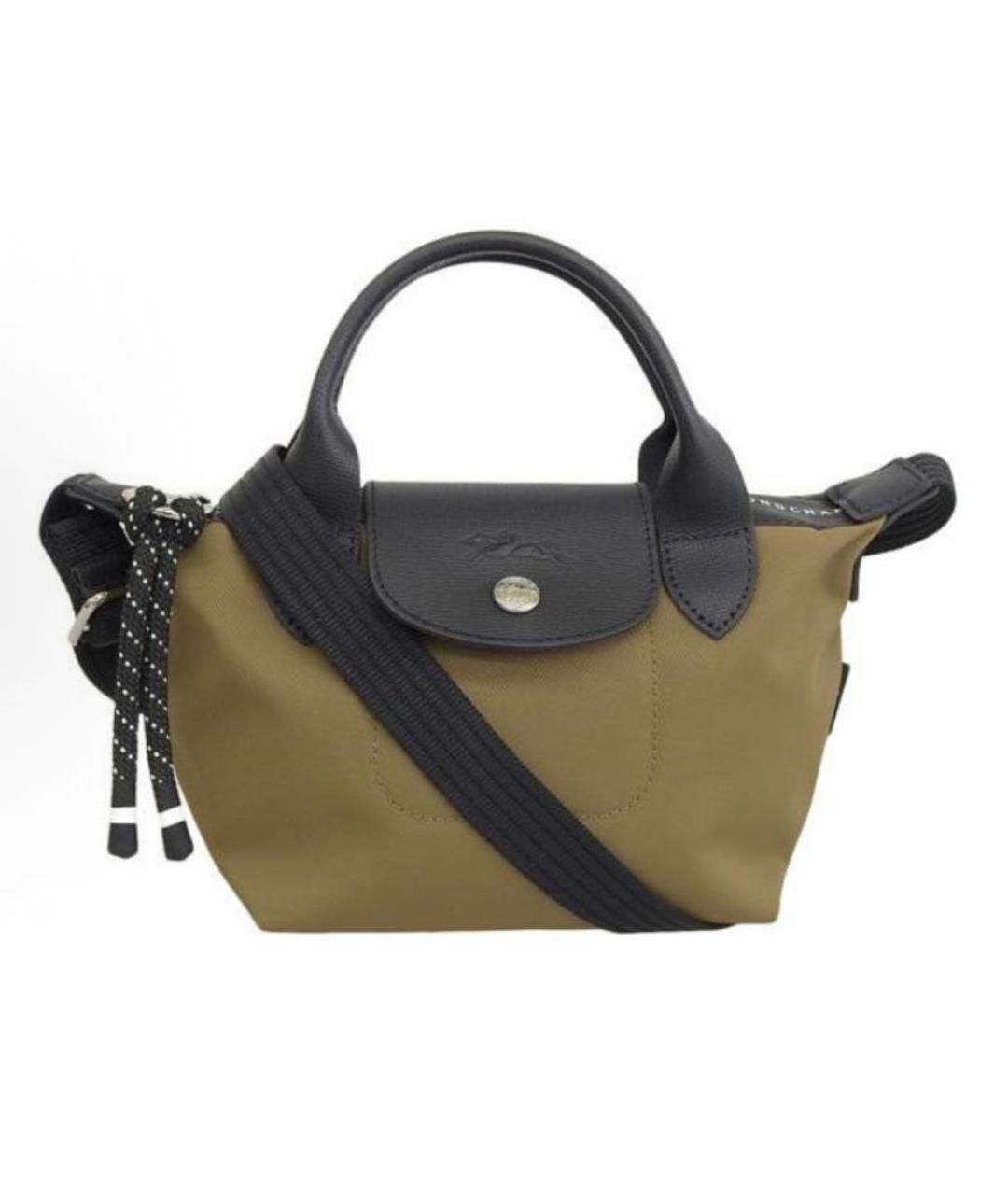 Женская мини-сумка LONGCHAMP Le Pliage Energy с короткой ручкой, классическая, с регулируемым плечевым ремнем из переработанного холста и коровьей кожи, цвет хаки. Длина 17 см Ширина 10 см Высота 14 см