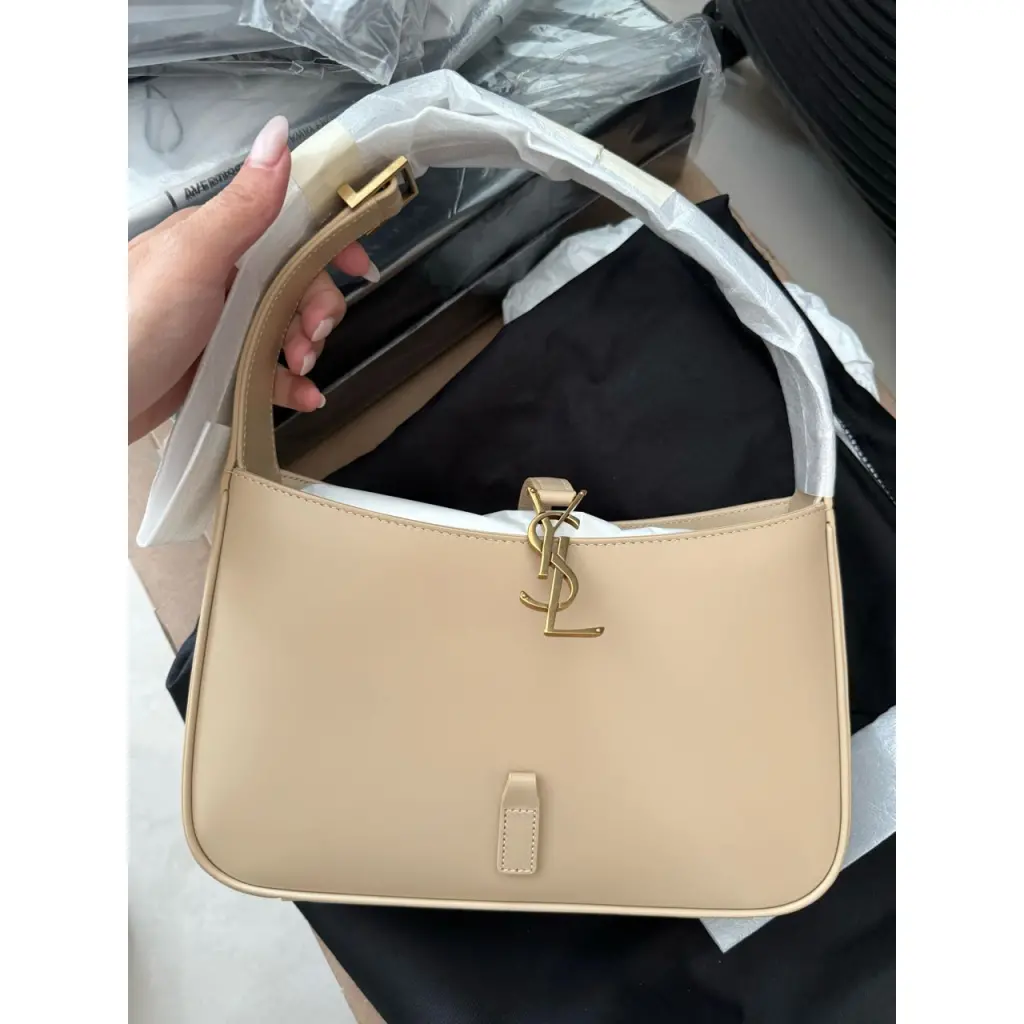 SAINT LAURENT Бежевая кожаная сумка с короткими ручками