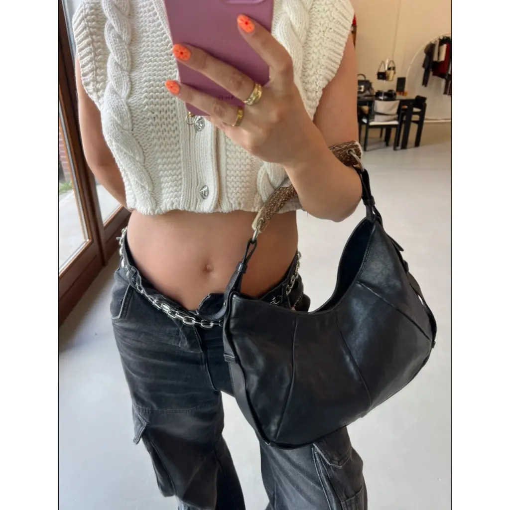 SAINT LAURENT Черная кожаная сумка с короткими ручками