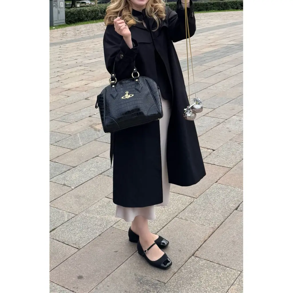 Черная лакированная сумка Vivienne Westwood, очень стильная.