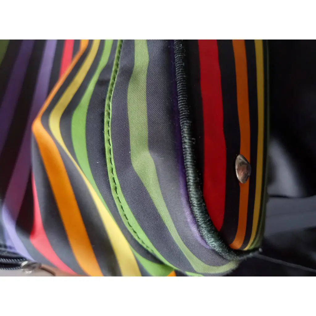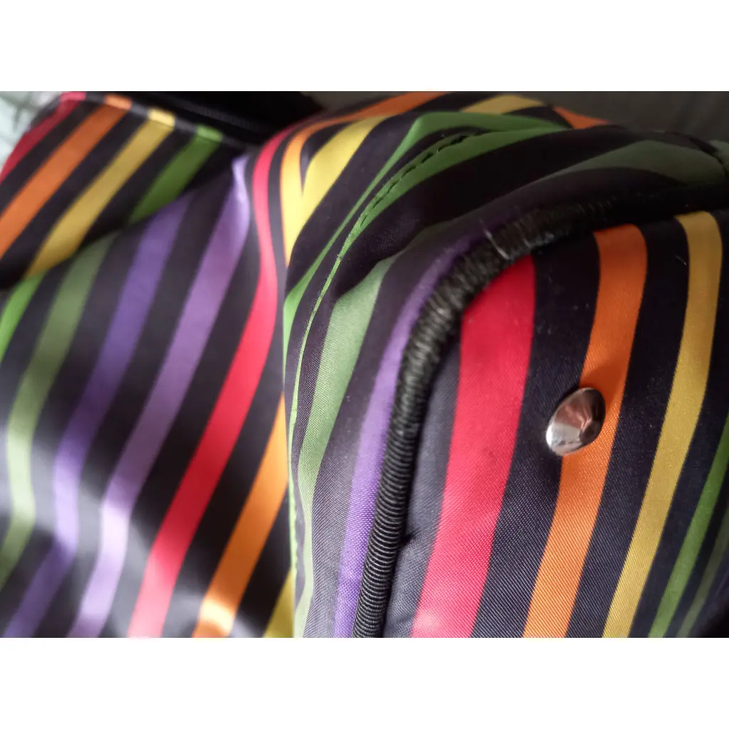 Яркая, вместительная, функциональная. 3 внутренних кармана, один из которых на молнии, внутренняя подкладка с принтом фирменного логотипа. Кармашки на передней части сумки на магнитах. Материал, из которого сделана сумка, легко поддаётся влажной обработке в домашних условиях. Покупалась во Франции. Ширина верхней части сумки -37см, нижней- 41 см, высота-25см.