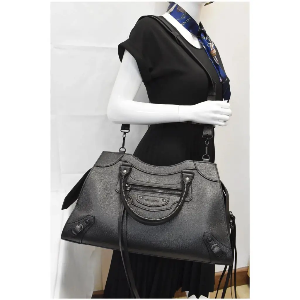 BALENCIAGA Черная кожаная сумка тоут