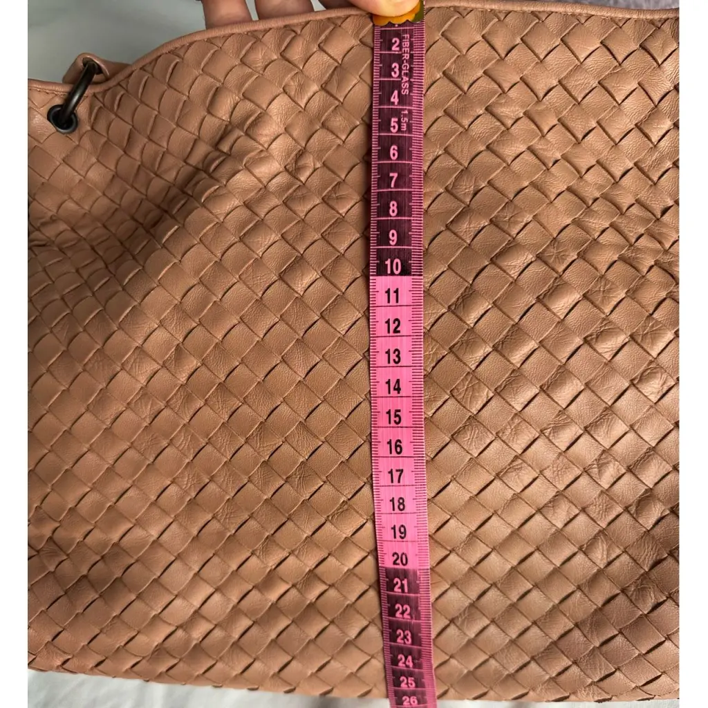 здравствуйте, точные замеры довольно сложно сделать из-за формы сумки, вот что получилось 🫶🏻