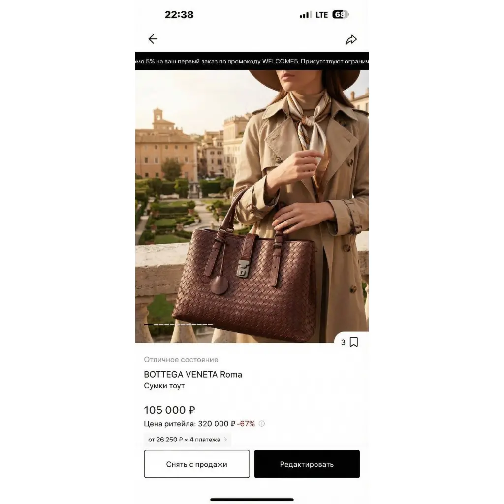 Модель: ❤️Bottega Veneta Roma❤️. Выполнена из кожи наппа в фирменной технике плетения Intrecciato в светло коричневом оттенке. Бренд и модель: Bottega Veneta Roma. Материал: Мягкая кожа наппа, сплетенная вручную. Дизайн: Сумка-тоут с двумя свернутыми ручками и клапаном. Особенности: Фирменный замок-защелка с выгравированным рисунком Intrecciato. Внутреннее устройство: Имеет разделенное внутреннее отделение,магнитную защёлку на внутреннем кармане,и внутренний карман на молнии. 🤎Estet — подлинность, стиль, эстетика.