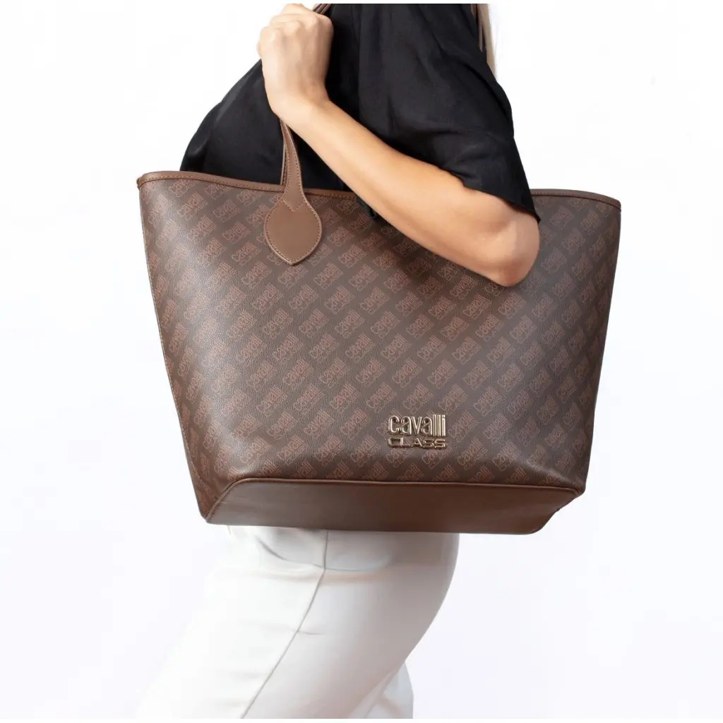 CAVALLI CLASS Коричневая кожаная сумка тоут