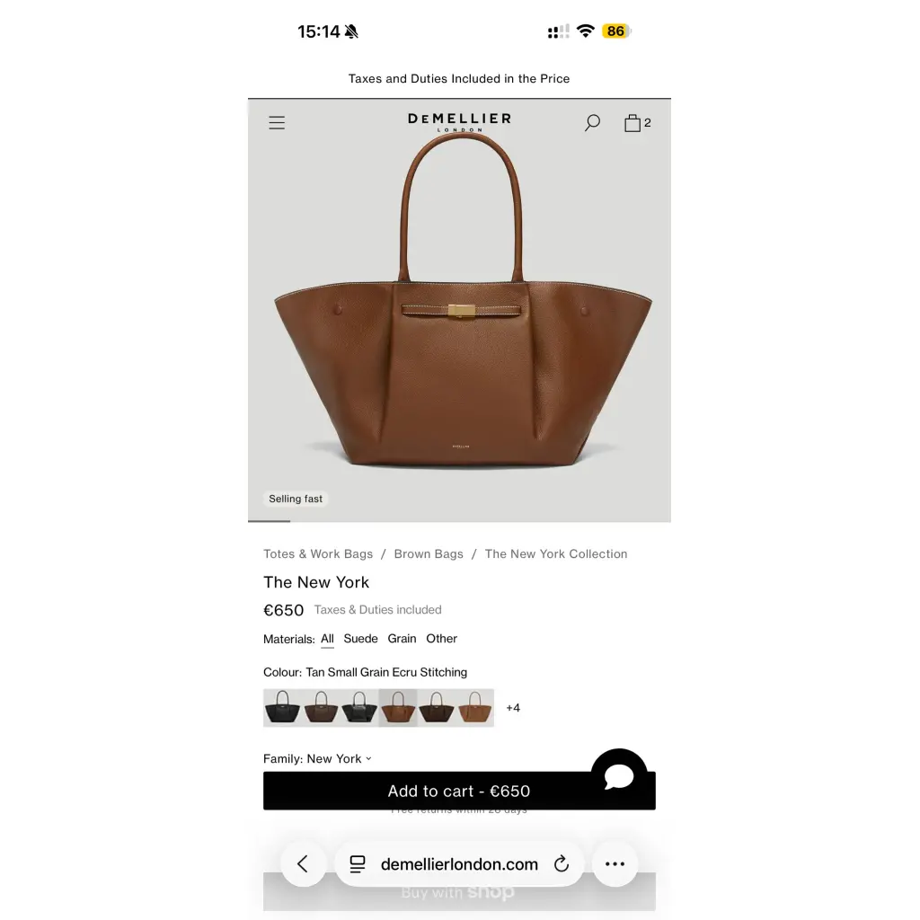 DEMELLIER Бежевая кожаная сумка тоут