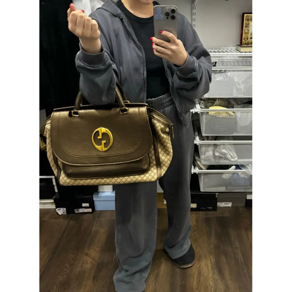 Вместительная кожаная сумка Gucci с оригинальным узором