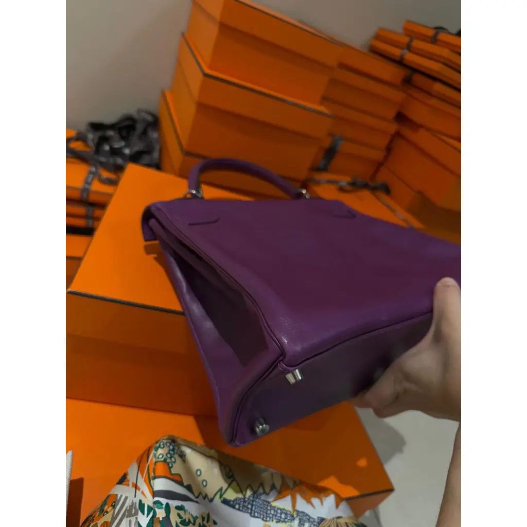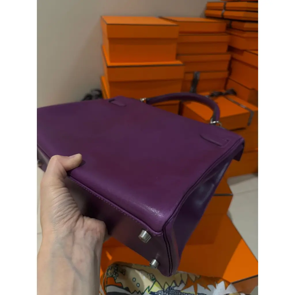 HERMES Фиолетовая кожаная сумка тоут