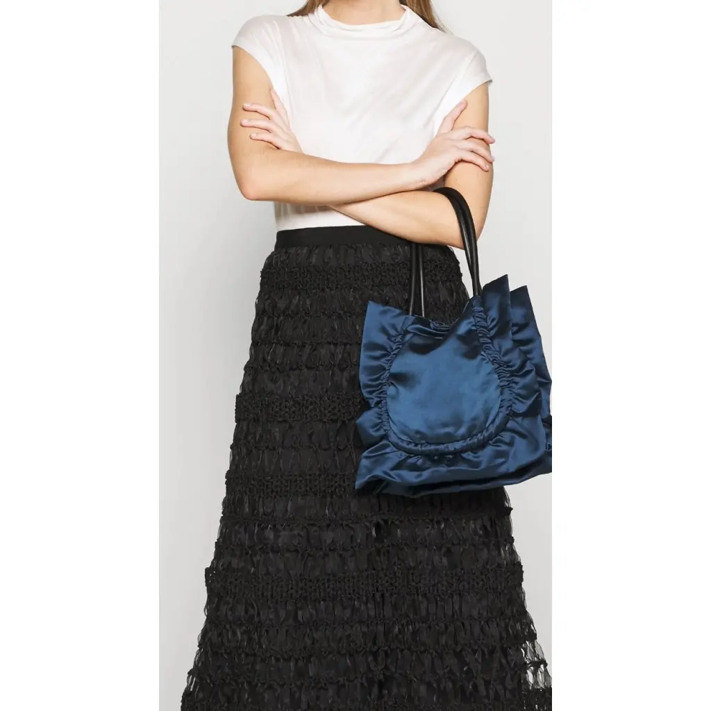 Текстильная сумка с короткими контрастными ручками выполнена в персиково-розовом оттенке из ткани с блеском и присобрана. Этот аксессуар из коллекции Max&Co станет изящным акцентом в сете в романтическом стиле, дополнит и городские ансамбли в пастельной гамме.