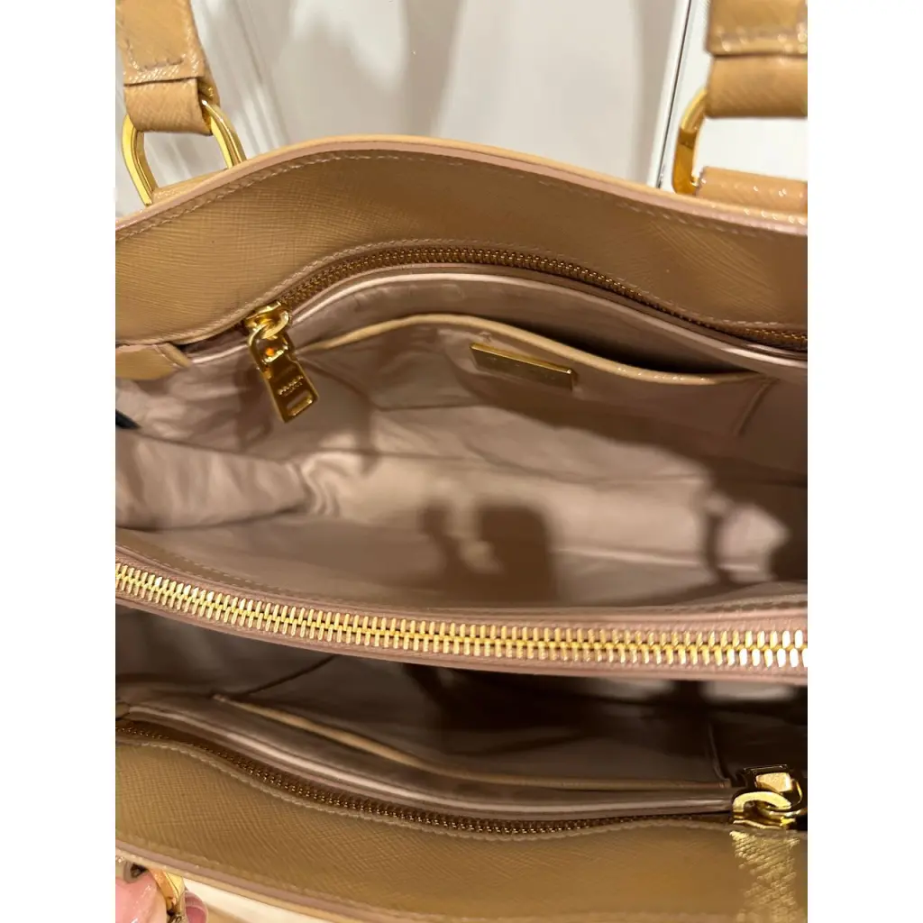 PRADA Бежевая сумка тоут из лакированной кожи