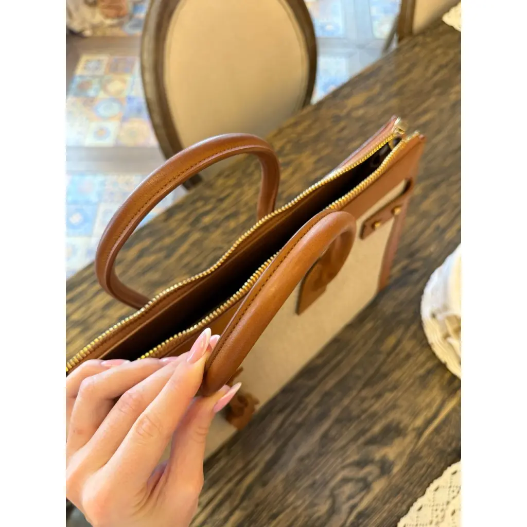 SAINT LAURENT Бежевая тканевая сумка тоут