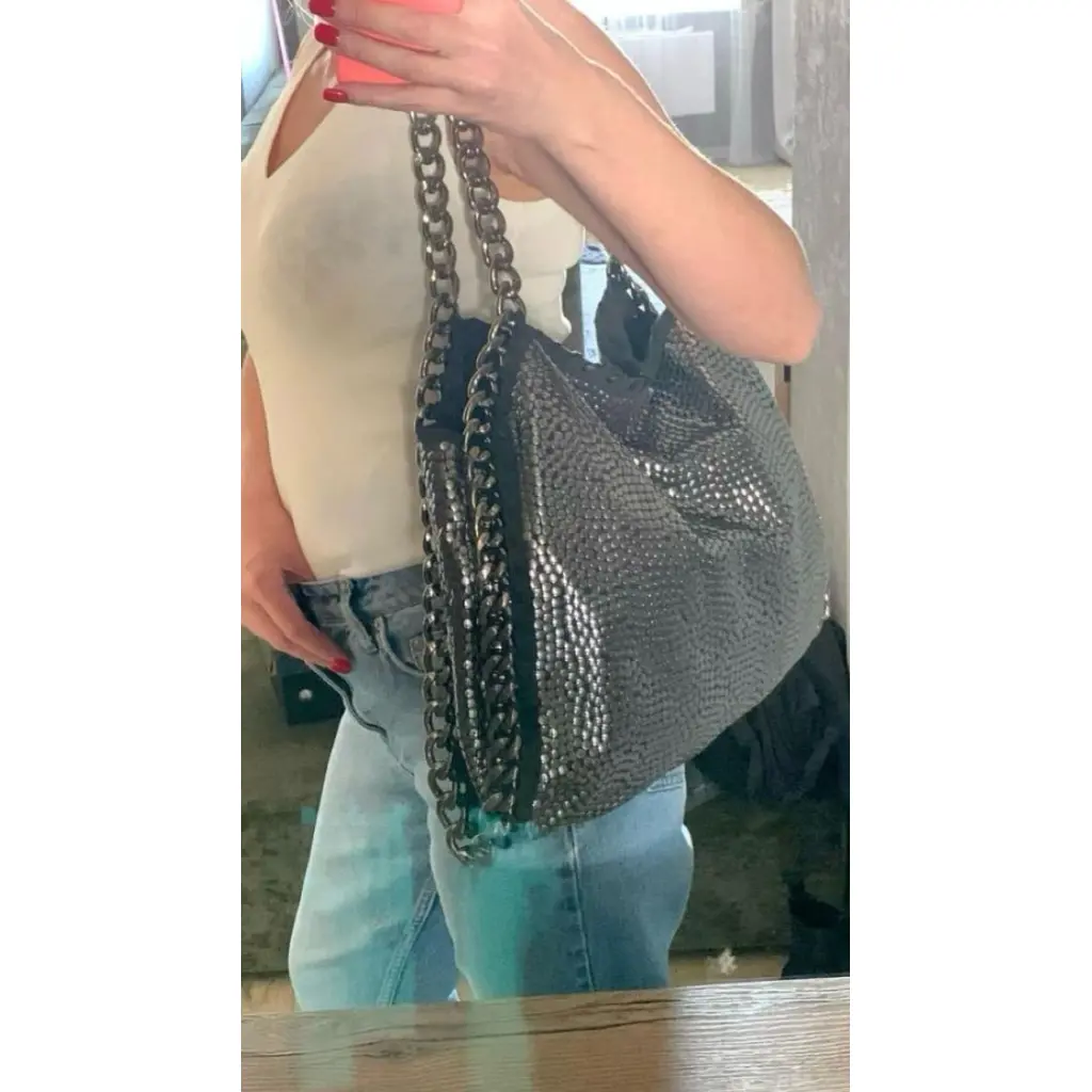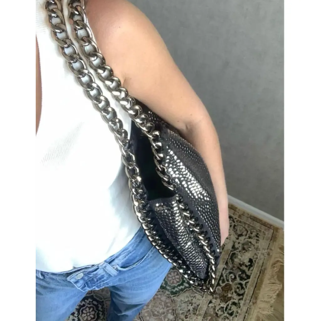 Новая! Очень эффектная сумка из эко кожи (принцип Стэллы Маккартни не использовать натуральную кожи для всех своих изделий), отделана металлическими круглыми пластинами, ручки-цепи, внутри текстильная подкладка, один карман на молнии и маленький кармашек. Сумка застегивается на кнопку. Размер 36*46. Дополнительные фото в комментариях. В носке не была, этикетки не сохранились.