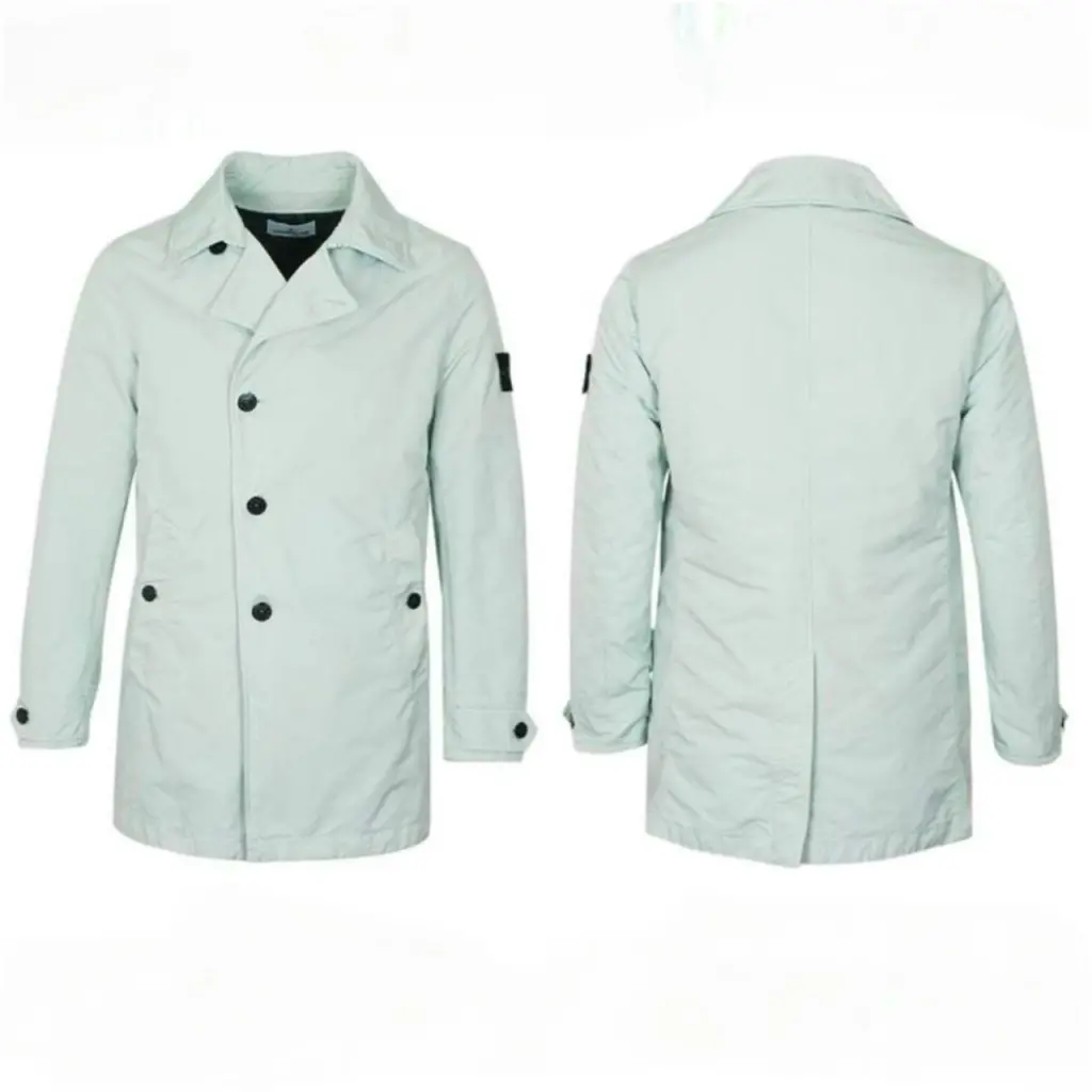 Короткий тренч из ткани David-TC. Начиная с японской полиэстер-полиамидной основы звездообразного сечения, изделия из David-TC шьются, а затем одновременно окрашиваются и обрабатываются антиобледенительным составом. В процессе окрашивания под давлением при температуре 130°C ткань подвергается термообработке, радикально изменяя свою текстуру и структуру, создавая поистине уникальный тактильный эффект. Изделие утеплено слоем PrimaLoft – эксклюзивной смесью ультратонких волокон, обеспечивающей исключительную теплоизоляцию. PrimaLoft разработан для сохранения сухости даже во влажном состоянии. Он обеспечивает самое высокое соотношение тепла к весу среди всех синтетических утеплителей.