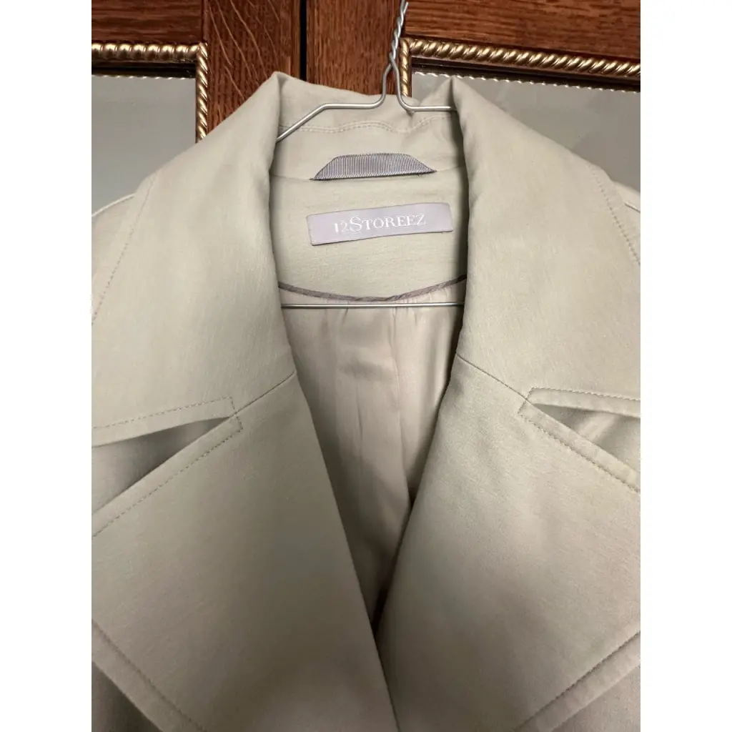 12 STOREEZ Зеленый вискозный тренч/плащ