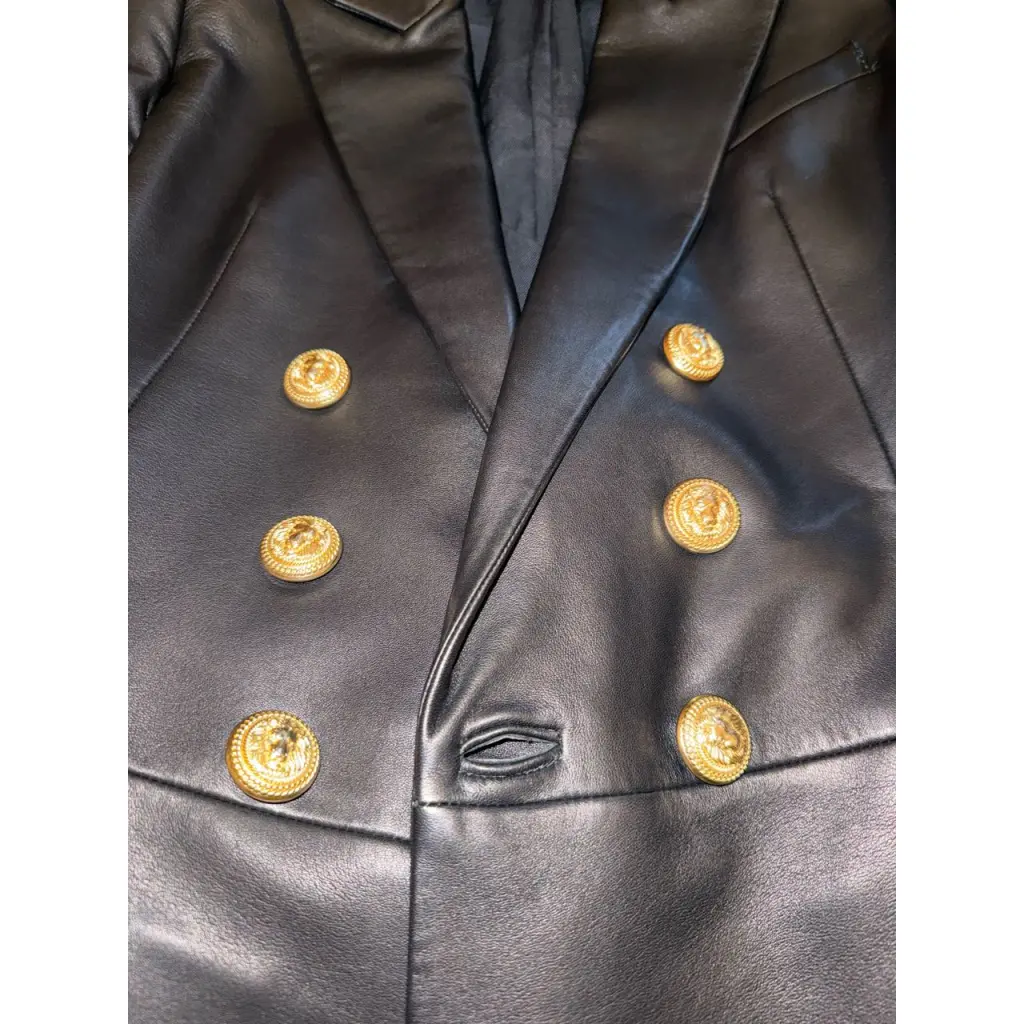 BALMAIN Черный кожаный тренч/плащ