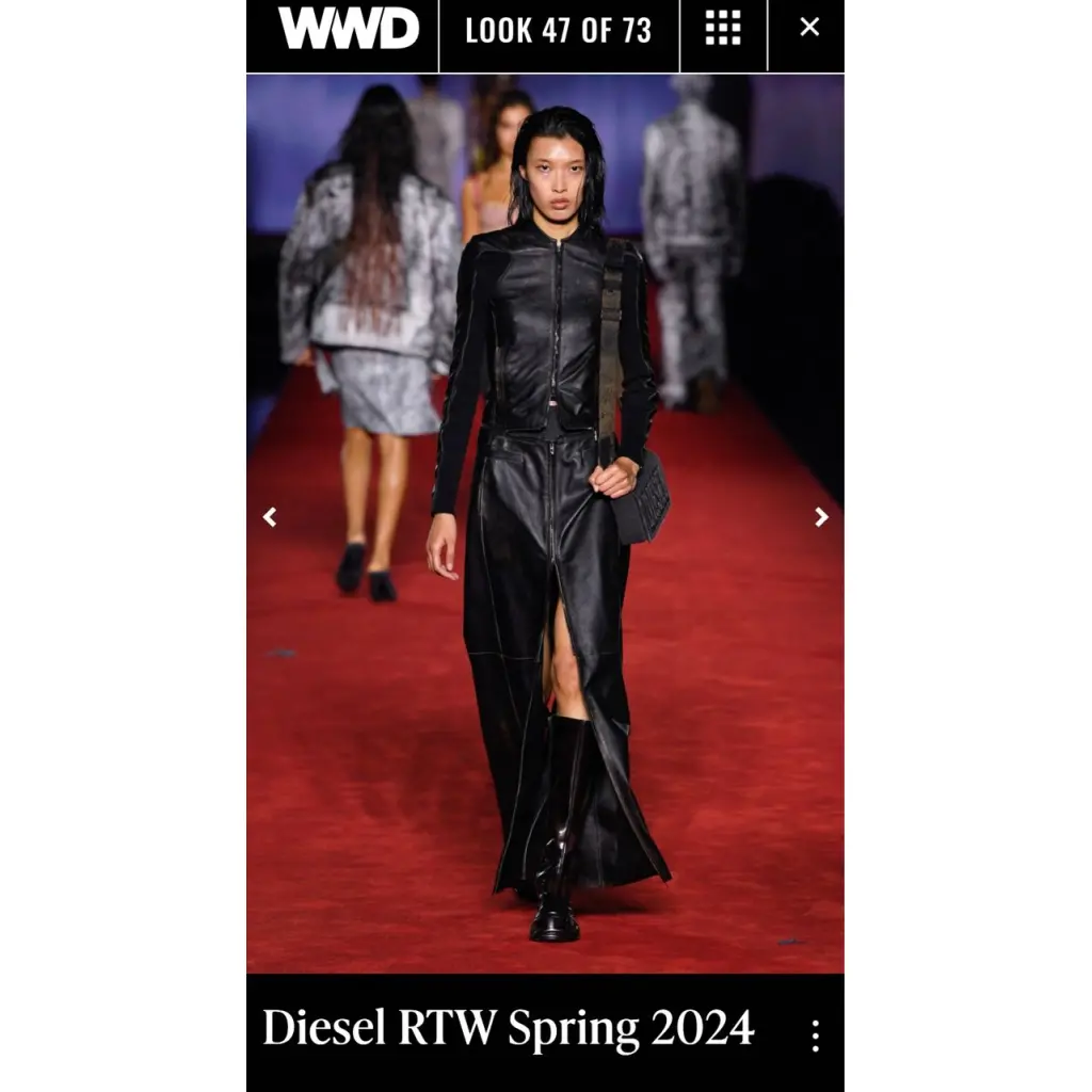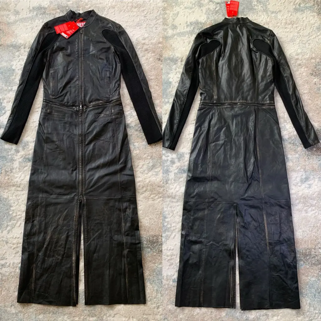 Прямо с fаshiоnshоw Sрring Summеr 24 это женское длинное платье раздвигает конверт утилитарных кодов. Она расстегивается посередине, превращаясь в две отдельные части: узкую байкерскую куртку с гибкими трикотажными вставками и юбку на молнии. Он изготовлен из черной кожи, которая является легкой, мягкой, как масло, и ручной чистки для естественной отделки.