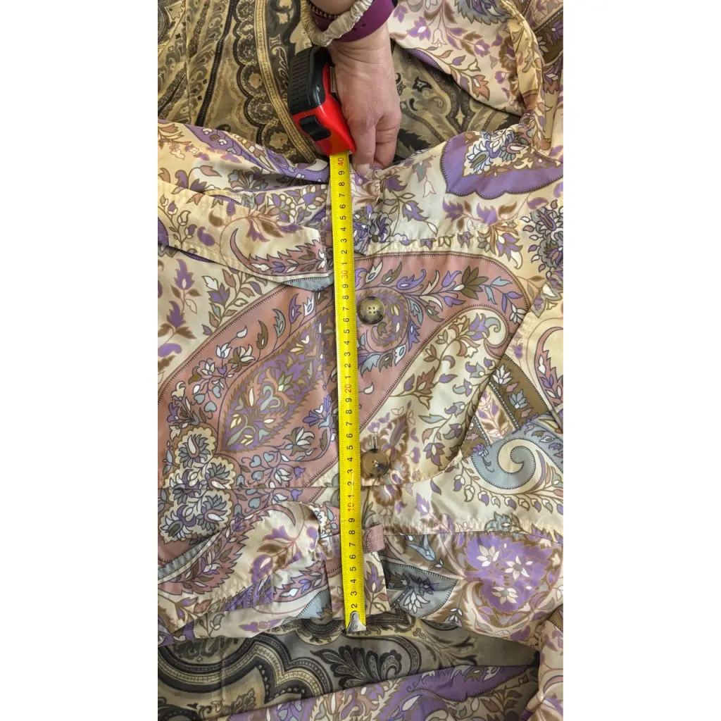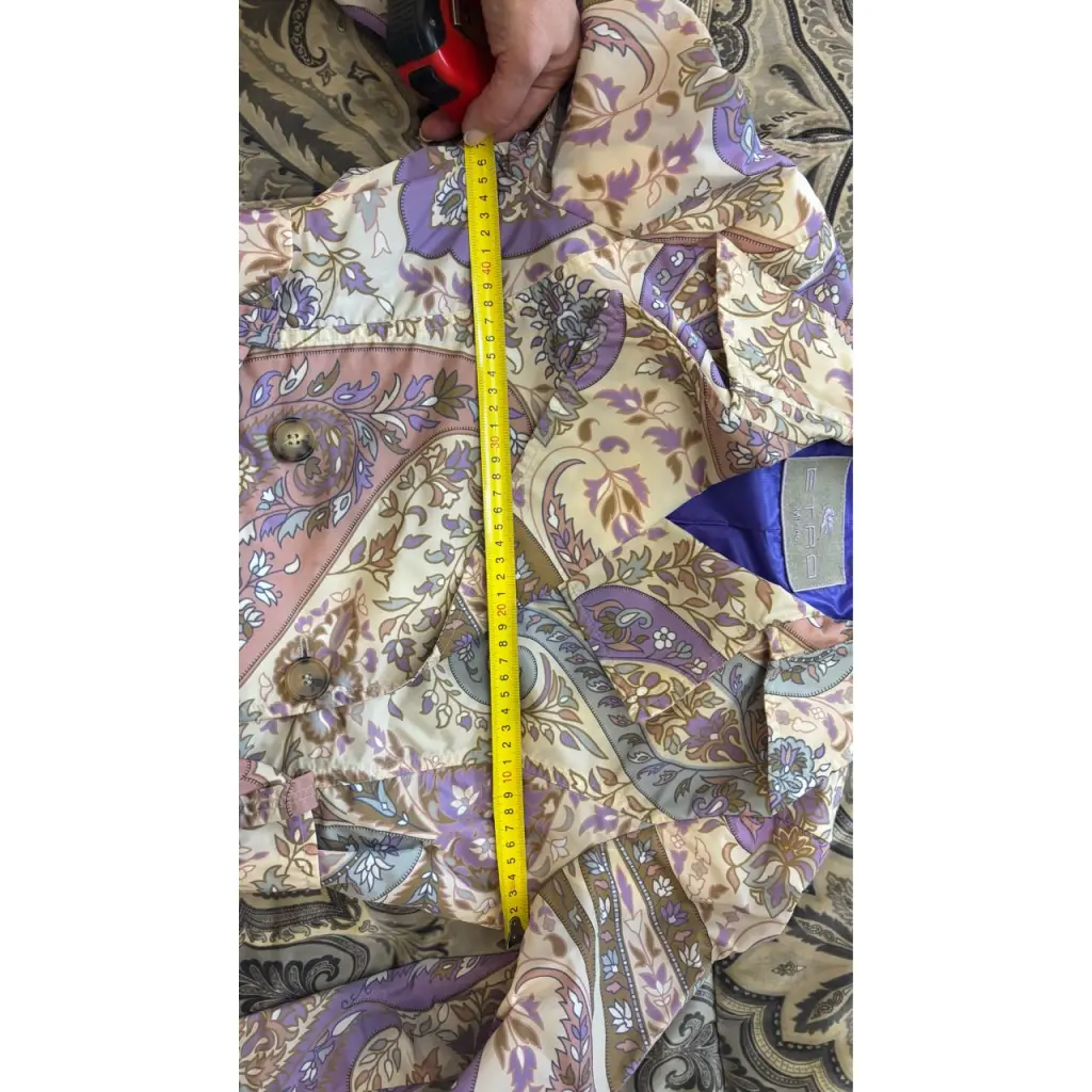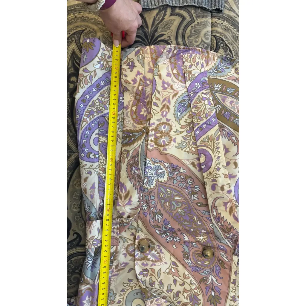 Красивый короткий тренч ETRO, фирменный рисунок в нежных красивых тонах, яркий фиолетовый подклад, отличное состояние. Длина изделия 78 см Длина рукава 60 см