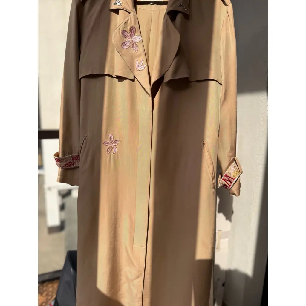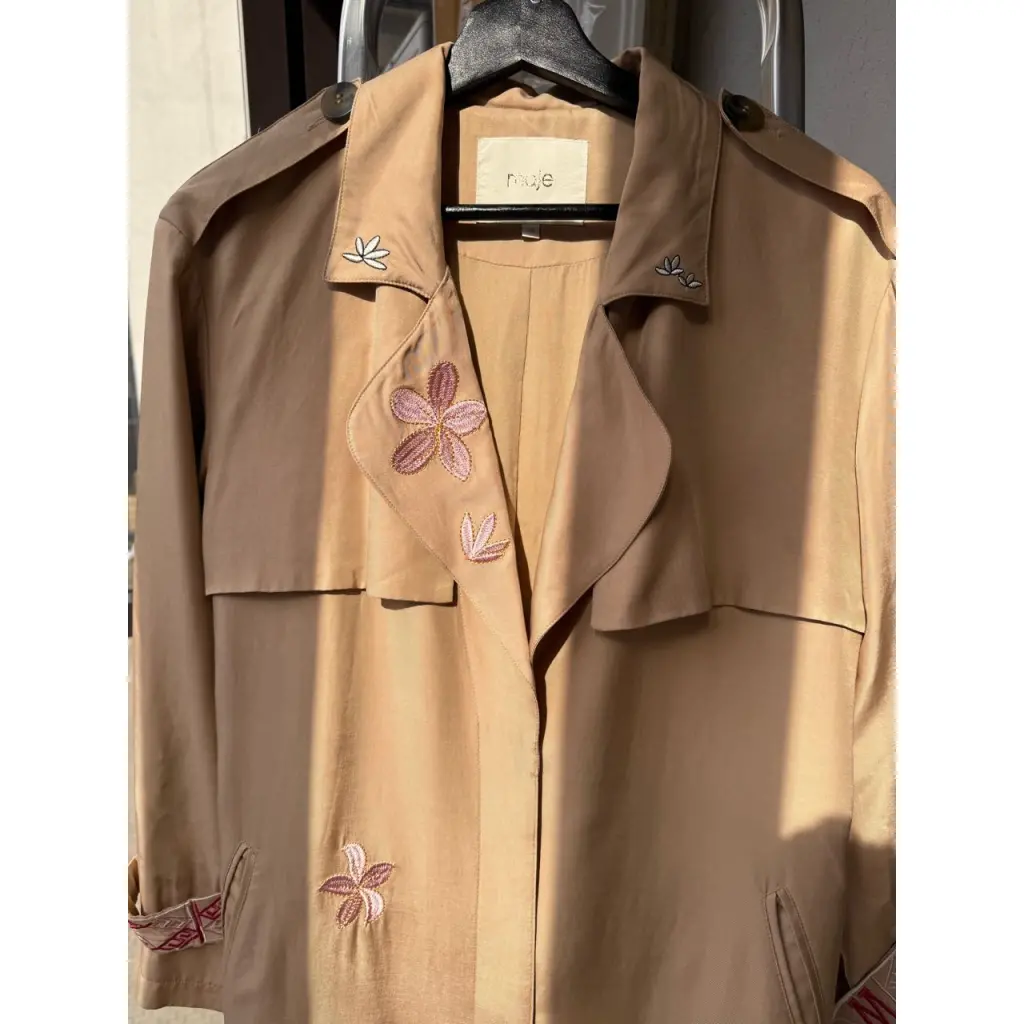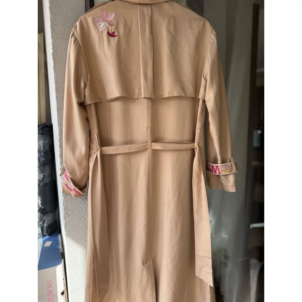 Тренч бренда maje в отличном состоянии на подкладке. Размер 36 французский, длина примерно 120-125 см. Приятная мягкая ткань, карманы, широкий пояс,красивая вышивка. Уход в химчистке.