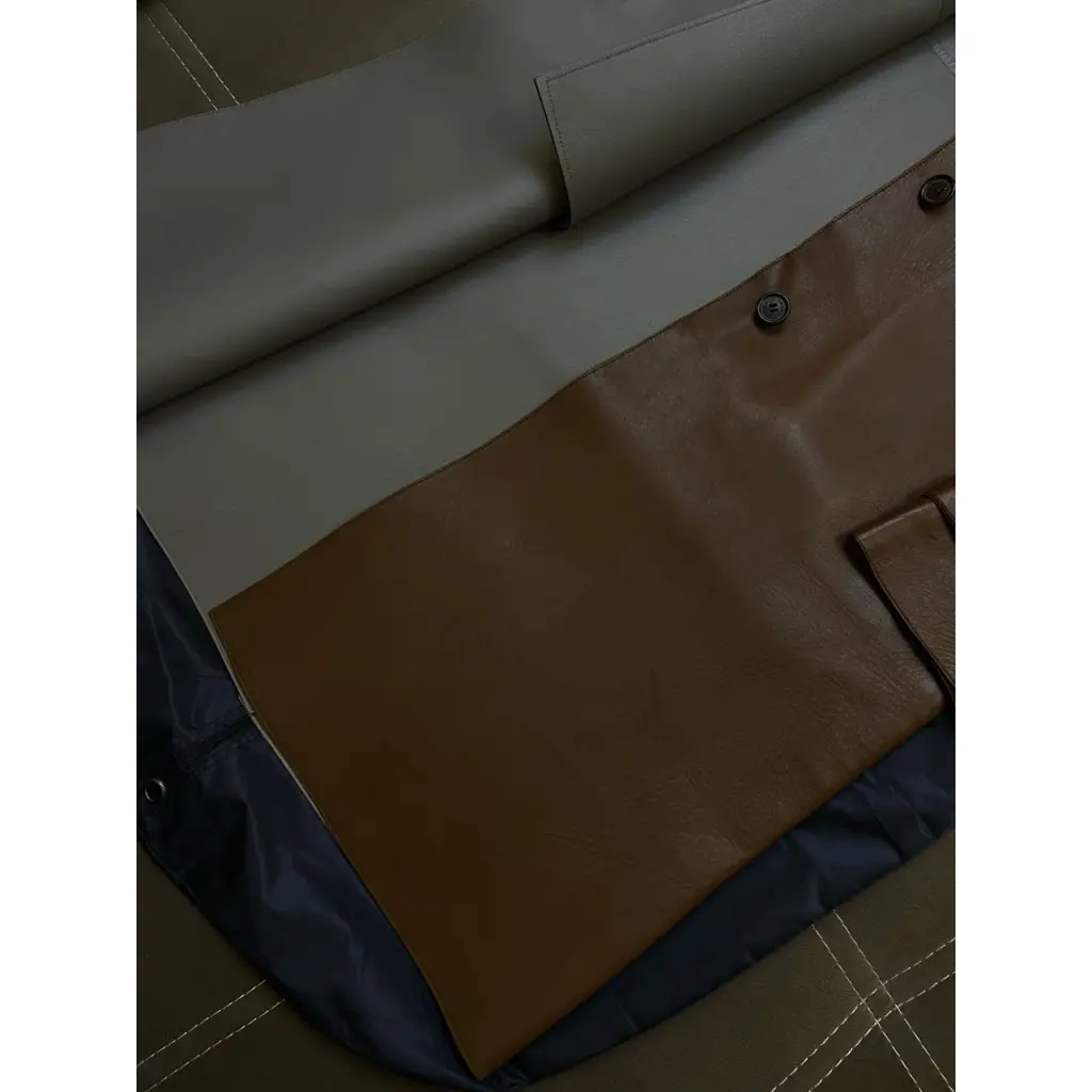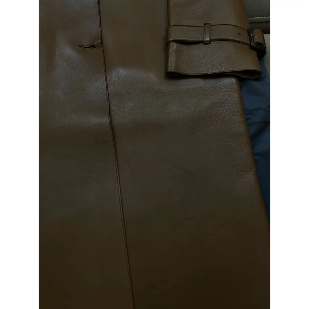 Плащ из плотной гладкой кожи с красивом темно коричневом оттенке