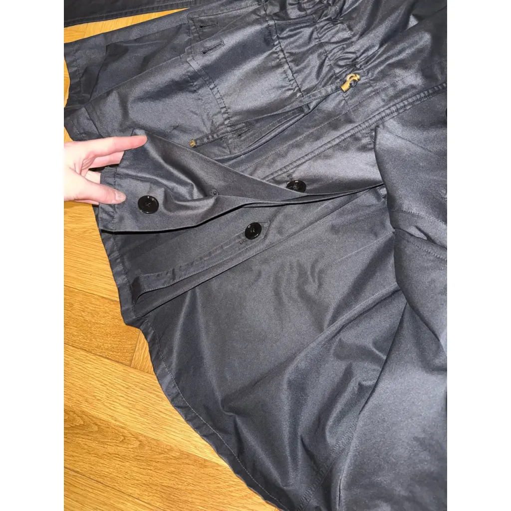 Легкий черный плащ с капюшоном. Ремешком можно подчеркнуть талию. Также длина рукава регулируется. Состав: 100% шелк и шерсть (этикетка приложена) Дефектов никаких нет
