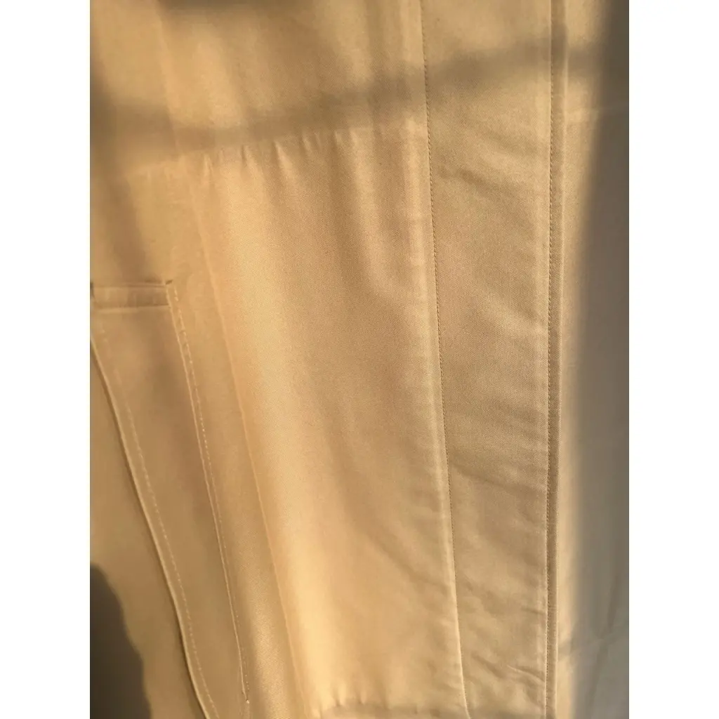 Маркировки размера на плаще нет , но на бирке был 46 I, Плащ двусторонний , прилагается пояс . Длина 116 см , ПОГ 61 см . Спереди имеются два маленьких малозаметных пятнышка ( см последнее фото ) вероятно, уйдут после химчистки