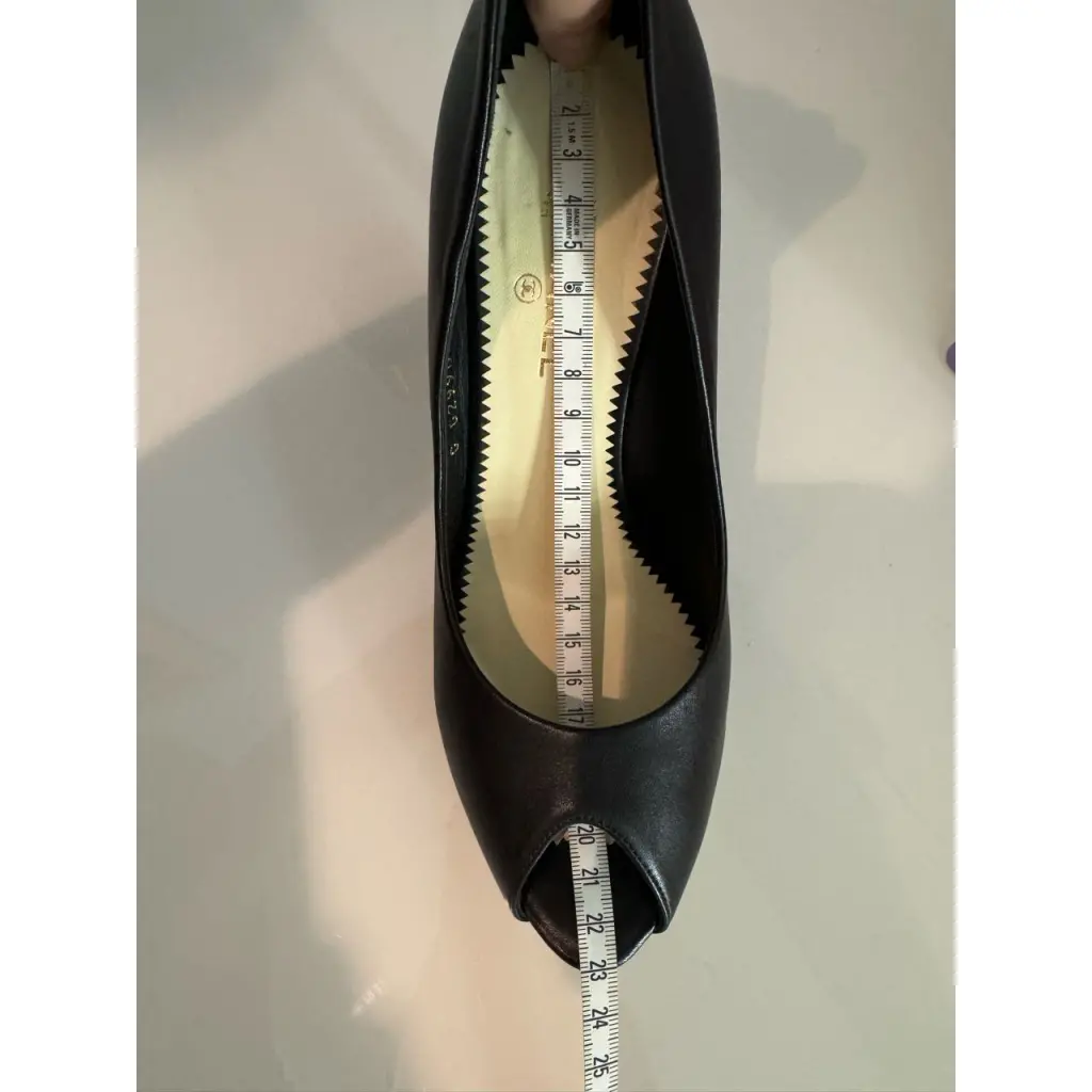 Классические туфли Chanel с открытым носом и CC лого на каблуке. Состояние: отличное. Следы носки на подошве. Материал: Кожа ягненка. Размер обуви: 37 С (широкая). Высота каблука: 105 мм. В комплекте: пальники